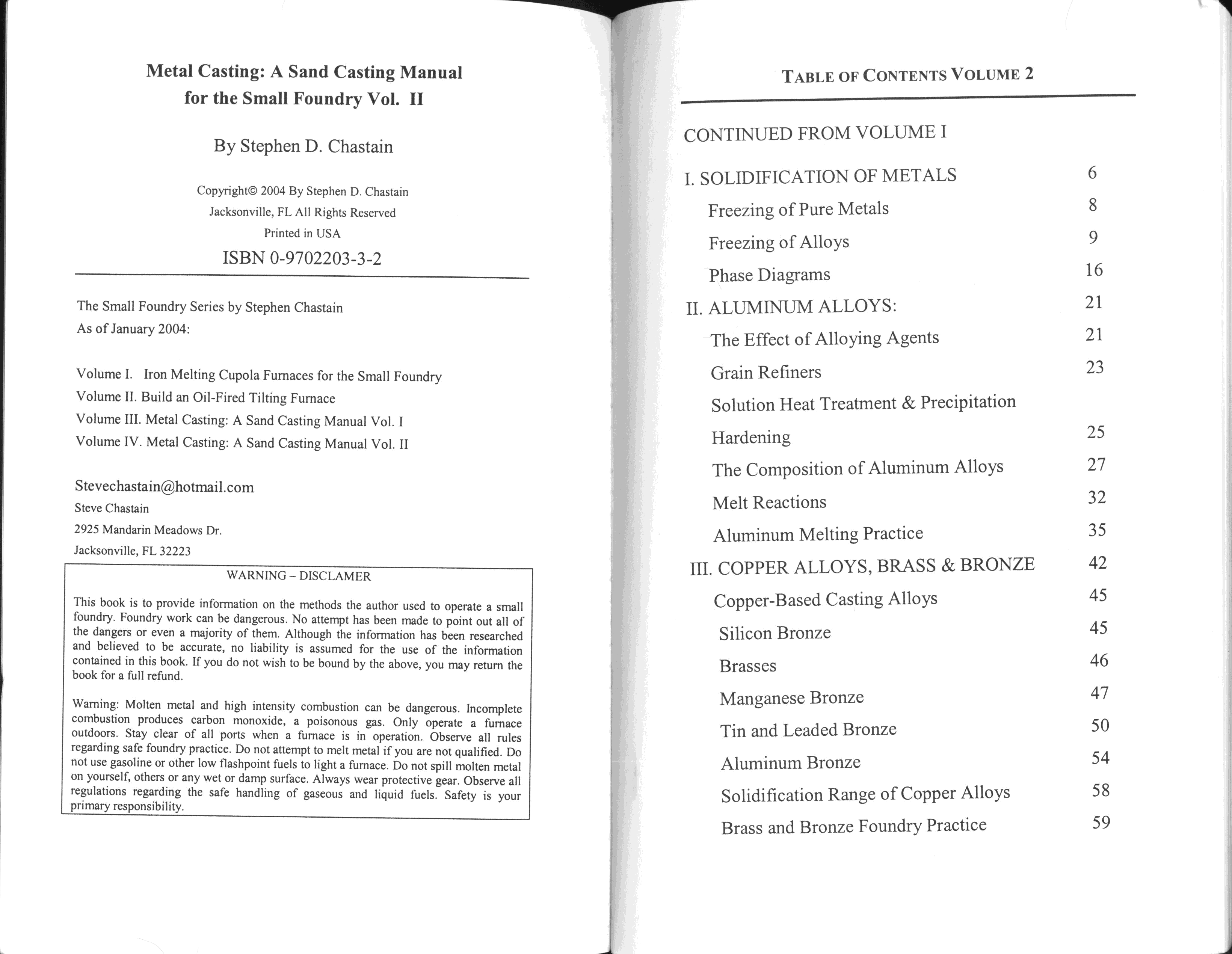 "Metal Casting: A Sand Casting Manual for the Small Foundry, Volume 2" - читать интересную книгу автора
