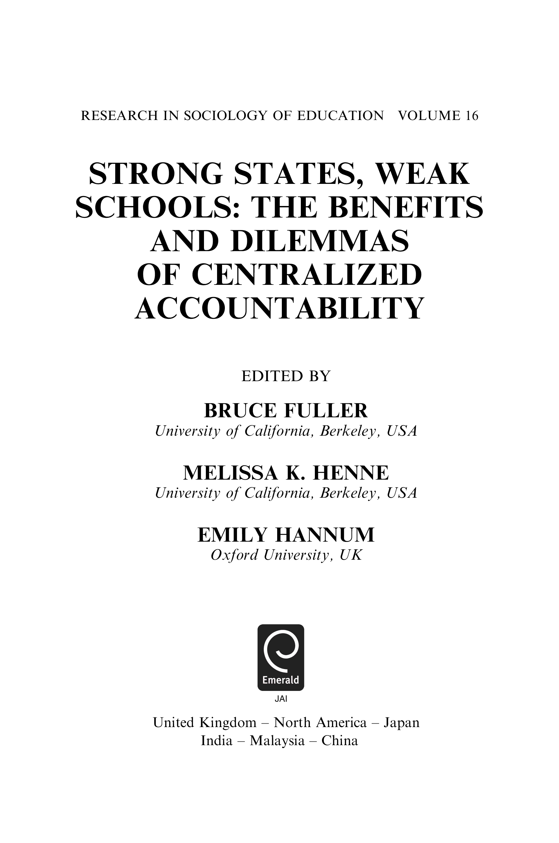 "Strong States, Weak Schools: The Benefits and Dilemmas of Centralized Accountability (Research in Sociology of Education, Vol. 16)" - читать интересную книгу автора