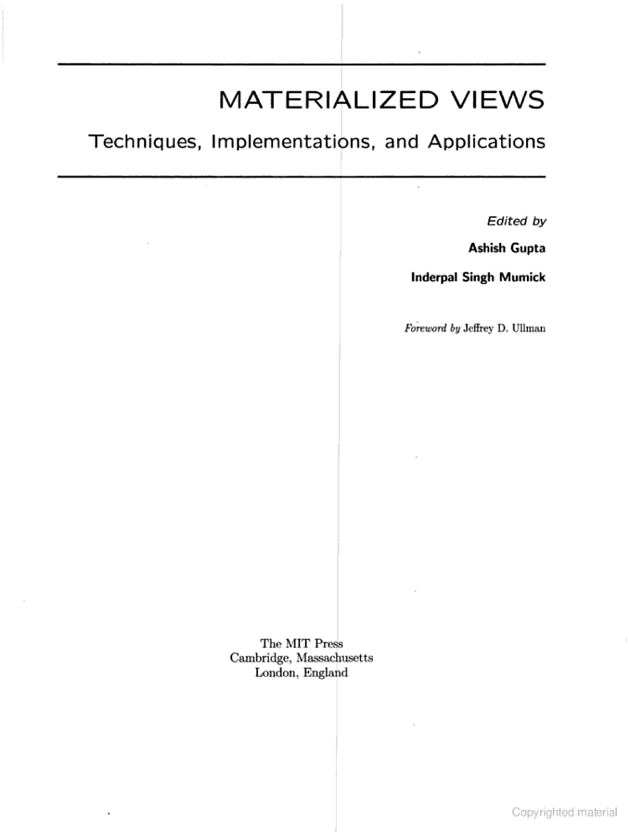 "Materialized Views: Techniques, Implementations, and Applications" - читать интересную книгу автора (Ashish Gupta, Inderpal Singh Mumick (editors))