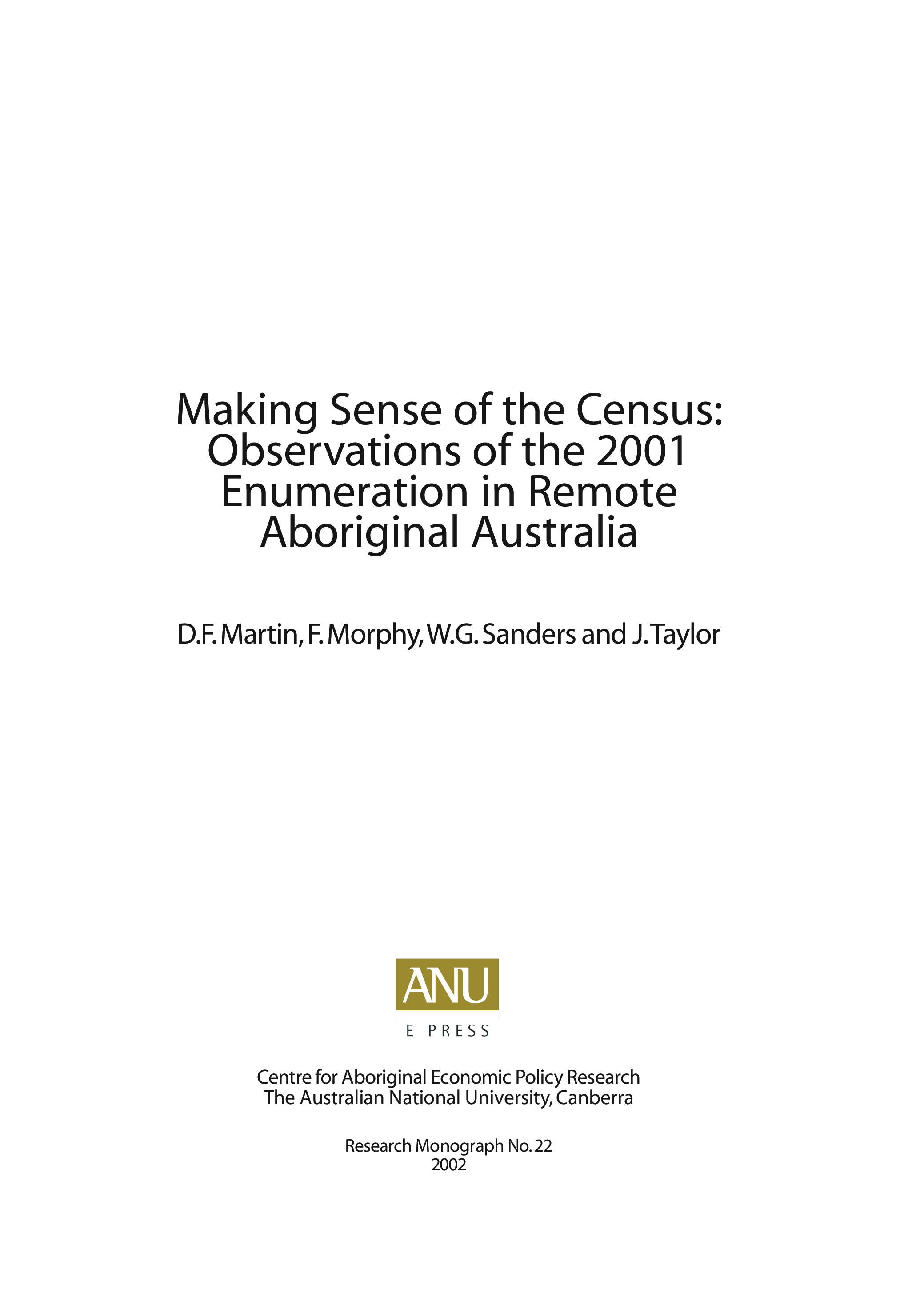 "Making Sense of the Census: Observations of the 2001 Enumeration in Remote Aboriginal Australia" - читать интересную книгу автора (D.F. Martin, F. Morphy, W.G Sanders, J. Taylor)