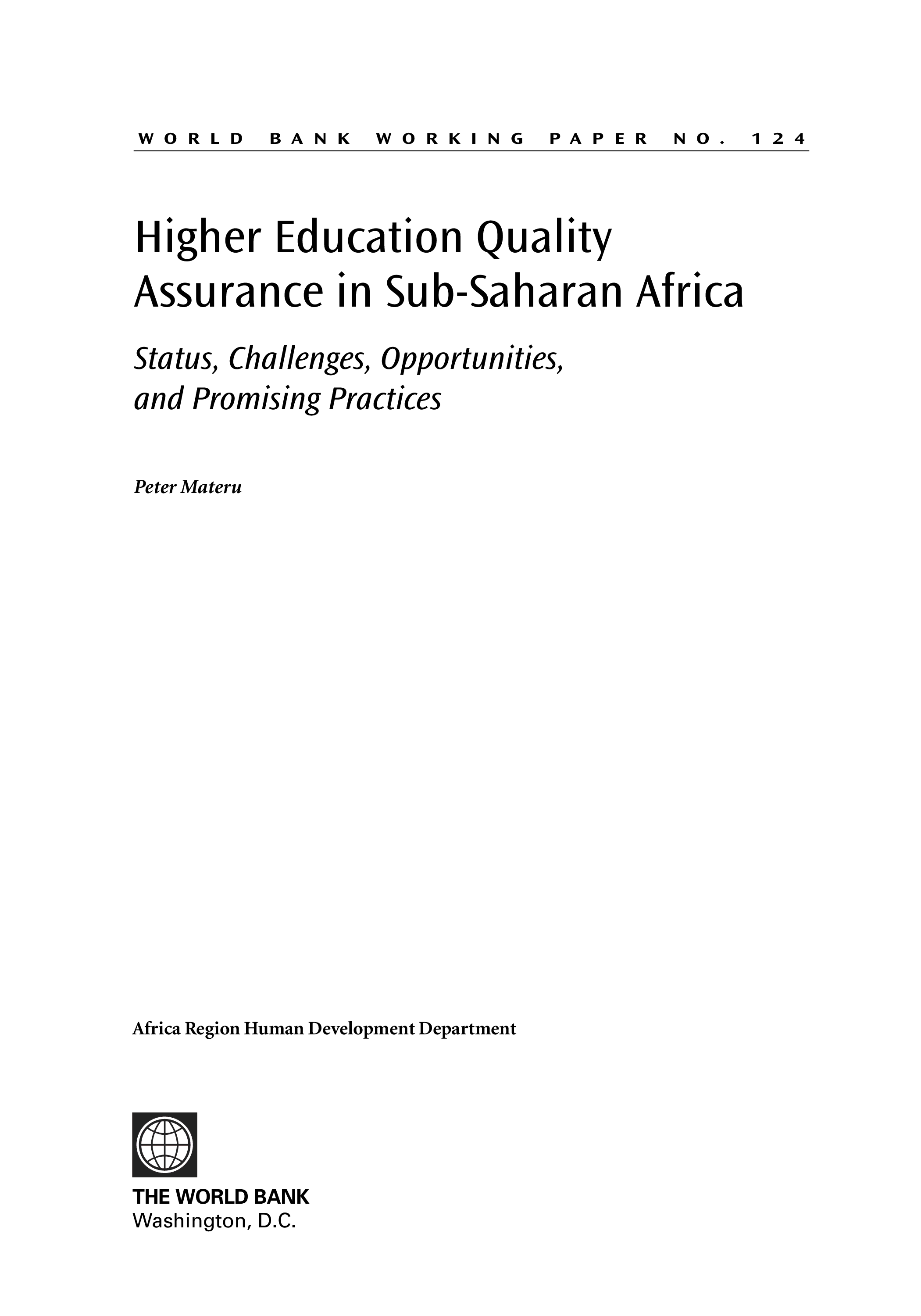 "Higher Education Quality Assurance in Sub-Saharan Africa: Status, Challenges, Opportunities, and Promising Practices (World Bank Working Papers)" - читать интересную книгу автора (Peter Nicolas Materu)