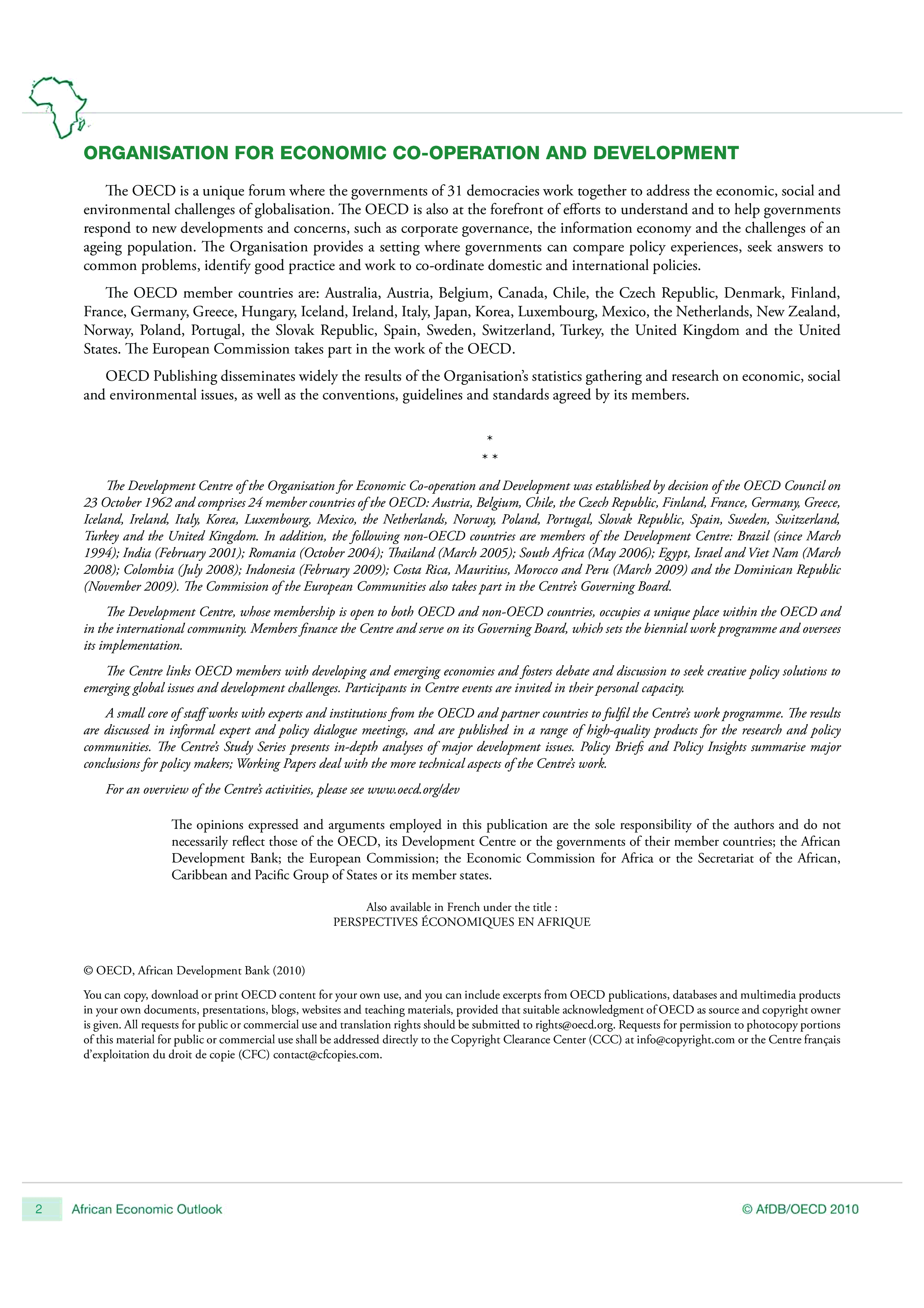"African Economic Outlook 2010 (OECD Development Centre)" - читать интересную книгу автора (OECD Organisation for Economic Co-operation and Development)