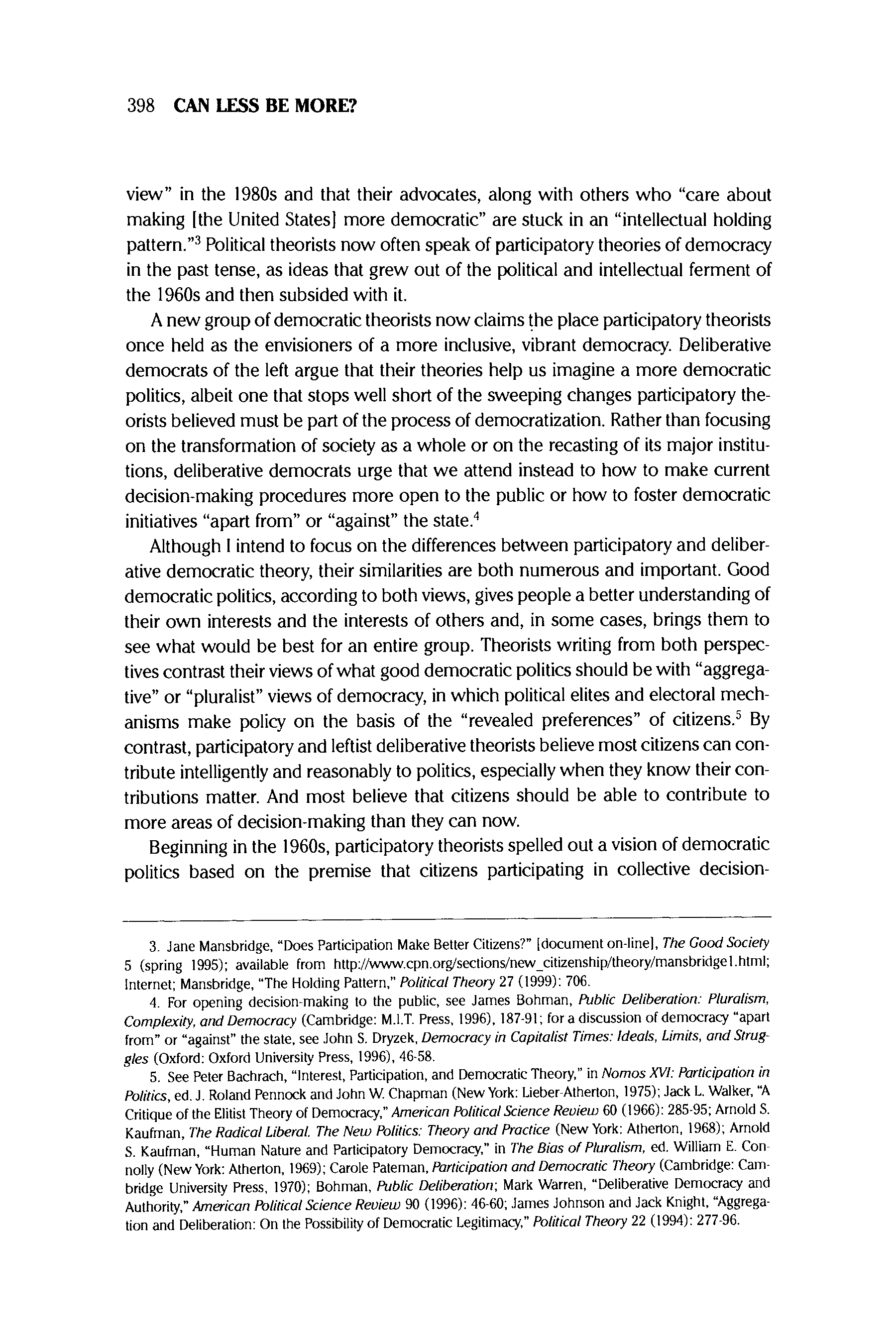 "Can Less Be More? Leftist Deliberative Democrats' Critique of Participatory Democracy" - читать интересную книгу автора