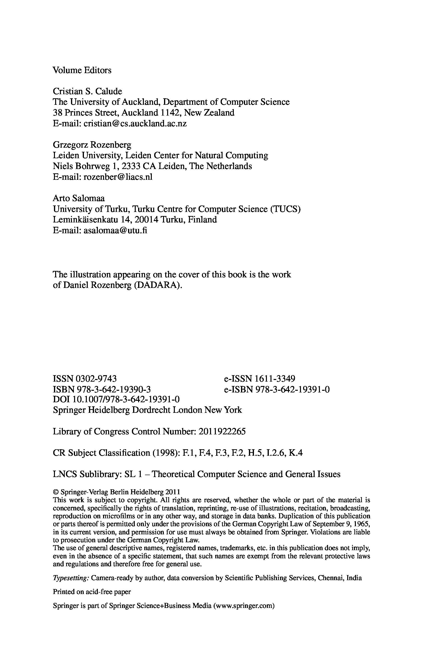 "Rainbow of Computer Science" - читать интересную книгу автора (Cristian S. Calude, Grzegorz Rozenberg, Arto Salomaa)