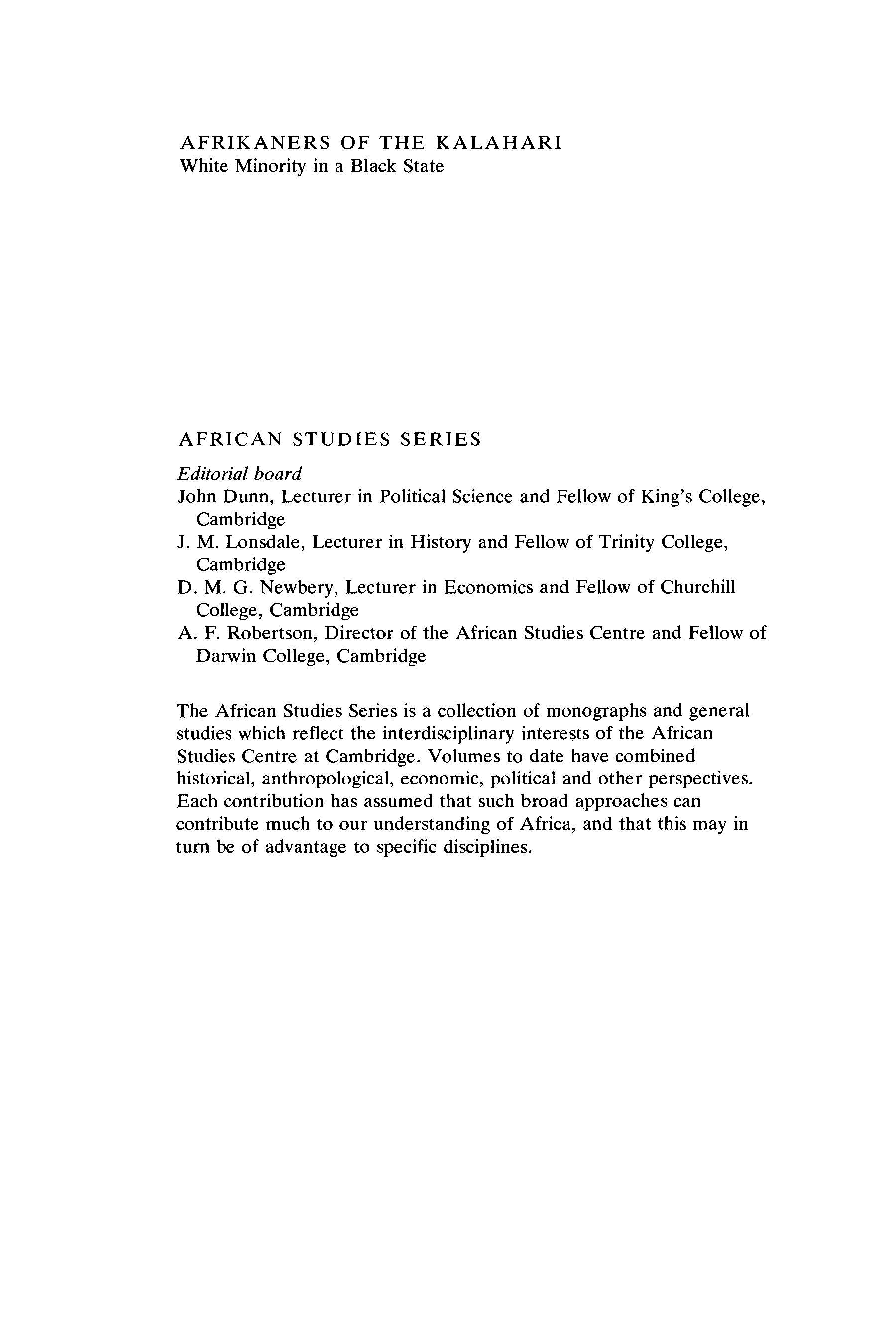 "Afrikaners of the Kalahari: White Minority in a Black State (African Studies (No. 24))" - читать интересную книгу автора
