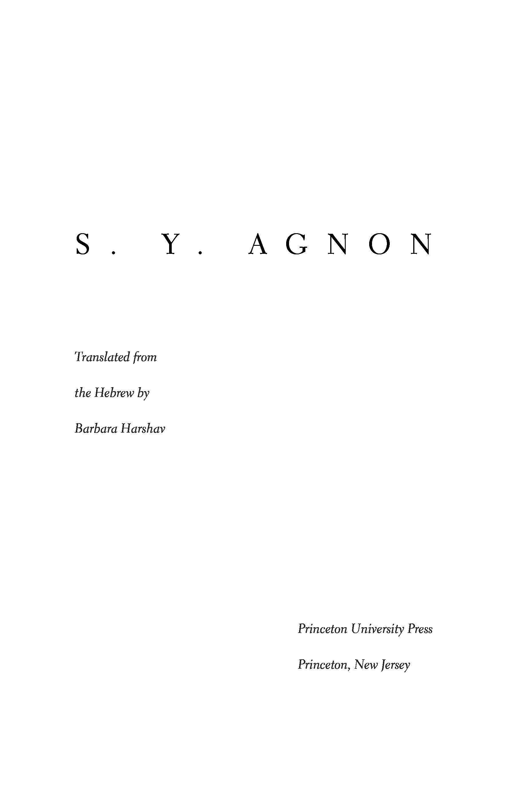 (S. Y. Agnon, Barbara Harshav, Benjamin Harshav)