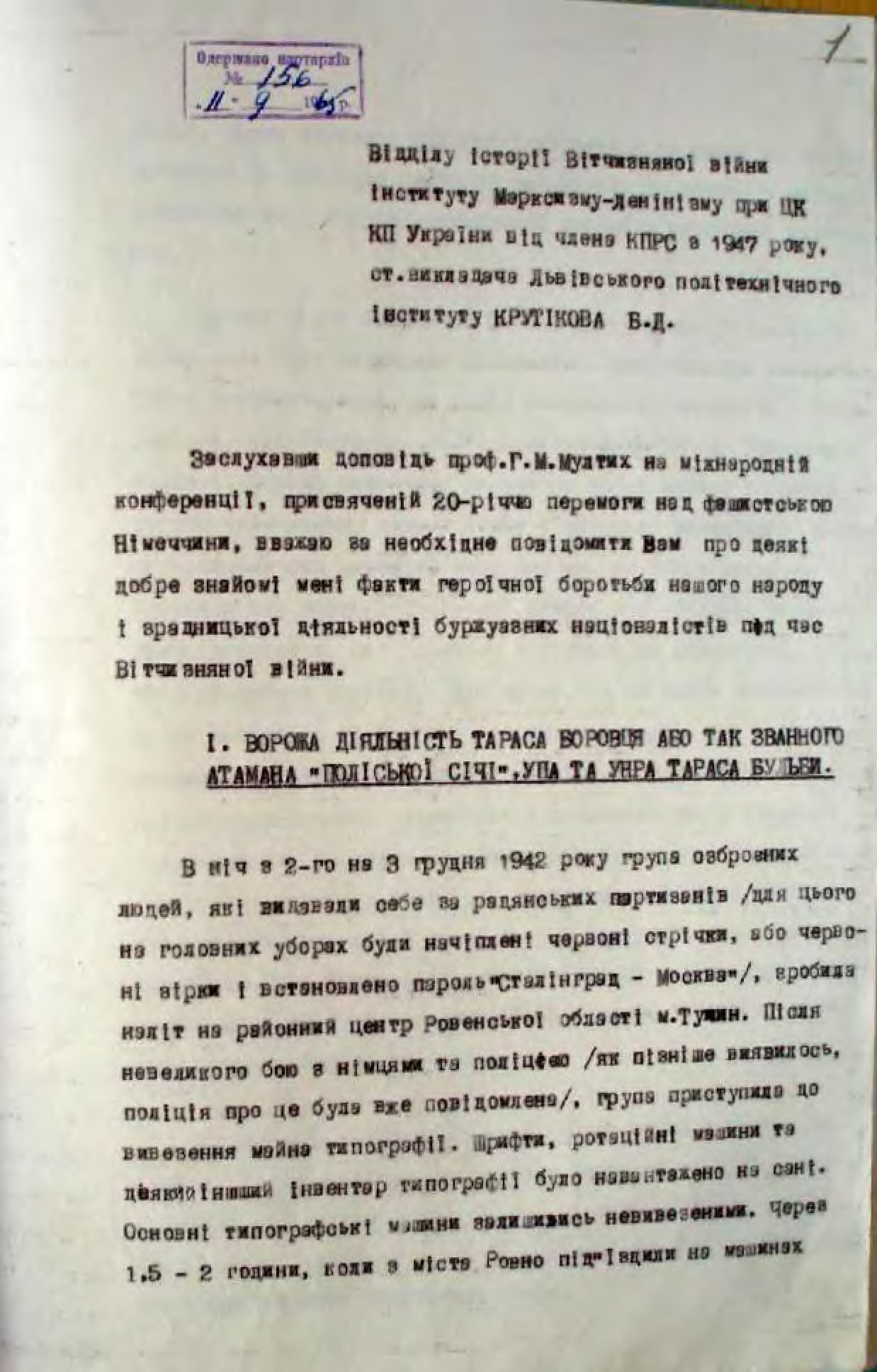 "Доповідь." - читать интересную книгу автора (Крутіков В. Д.)