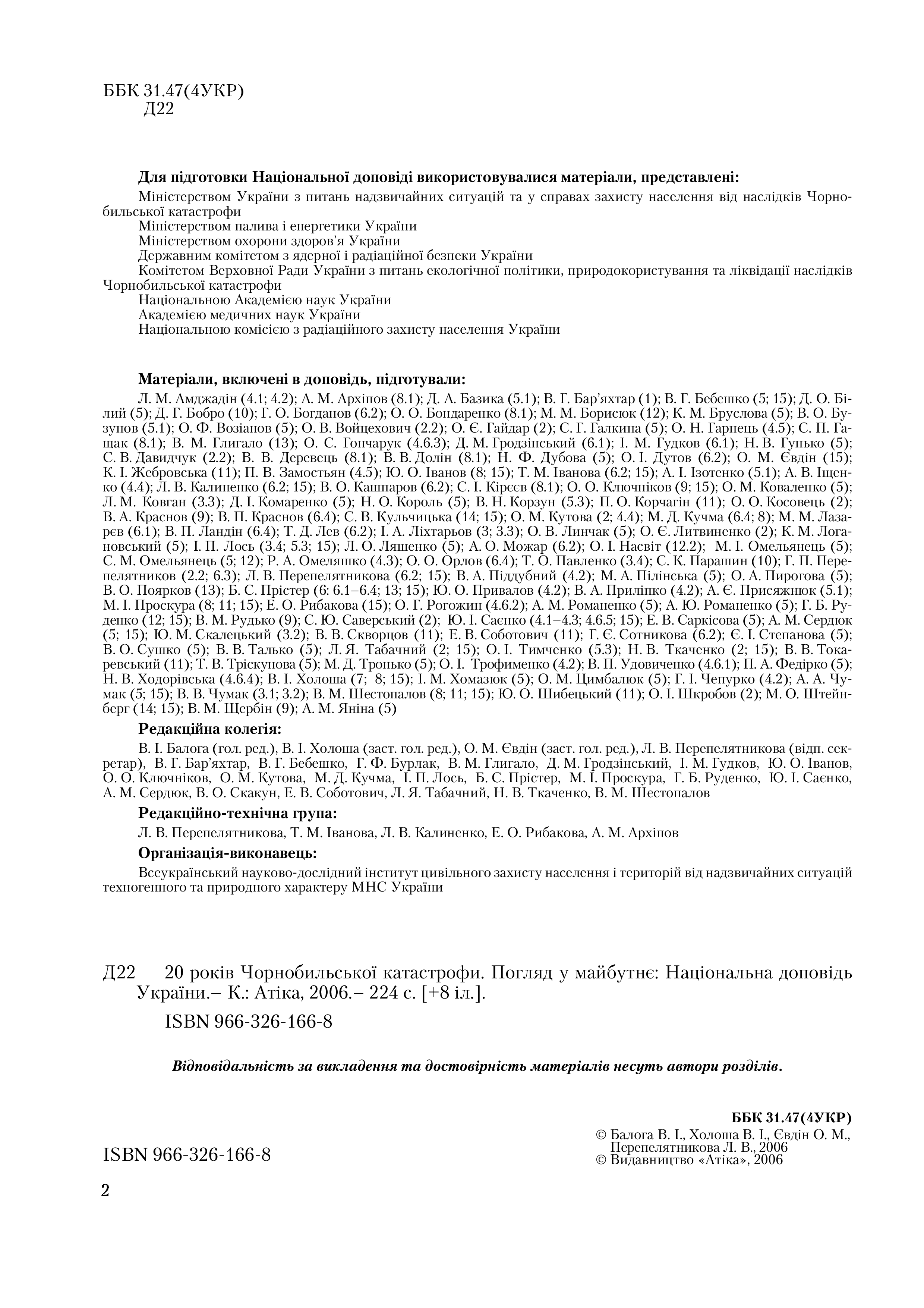 "20 років Чорнобильської катастрофи. Погляд у майбутнє. Національна доповідь України." - читать интересную книгу автора