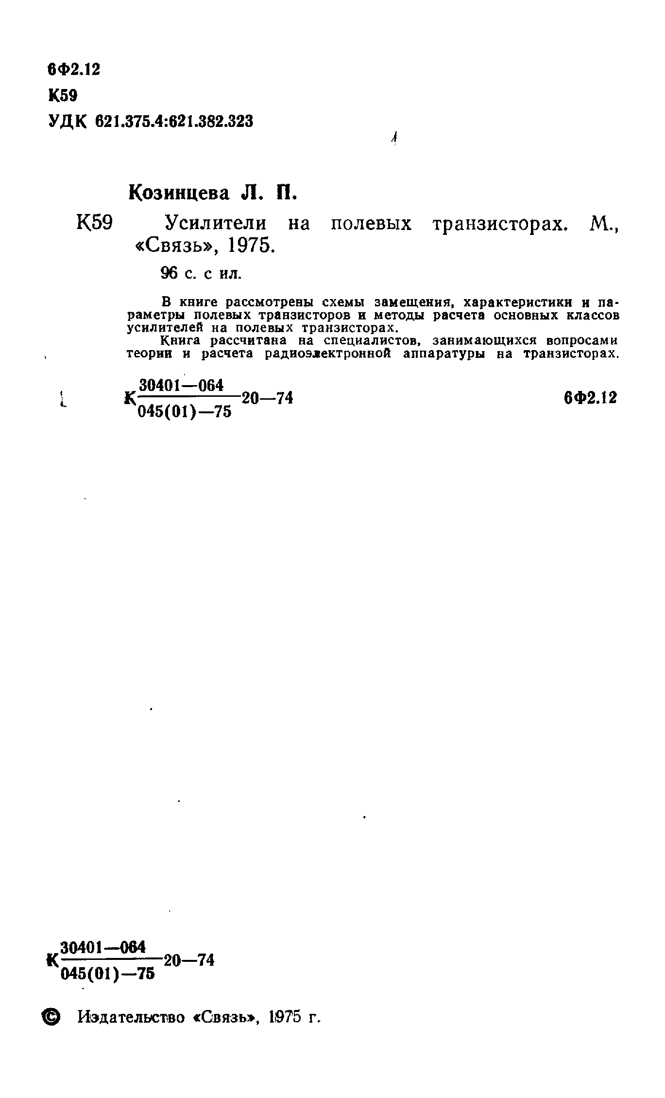"Усилители на полевых транзисторах" - читать интересную книгу автора