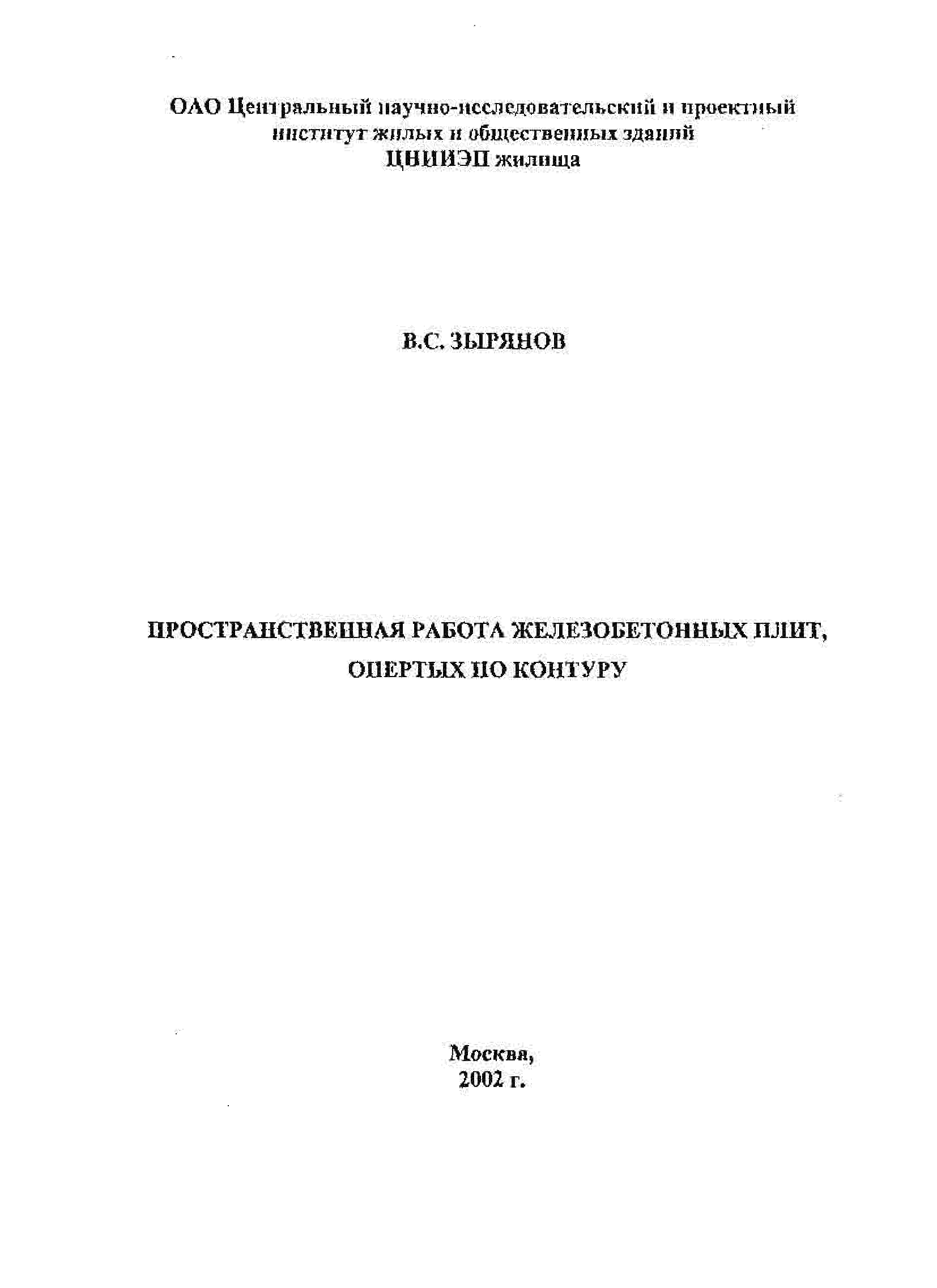 "Пространственная работа железобетонных плит, опёртых по контуру" - читать интересную книгу автора (В.С. Зырянов)