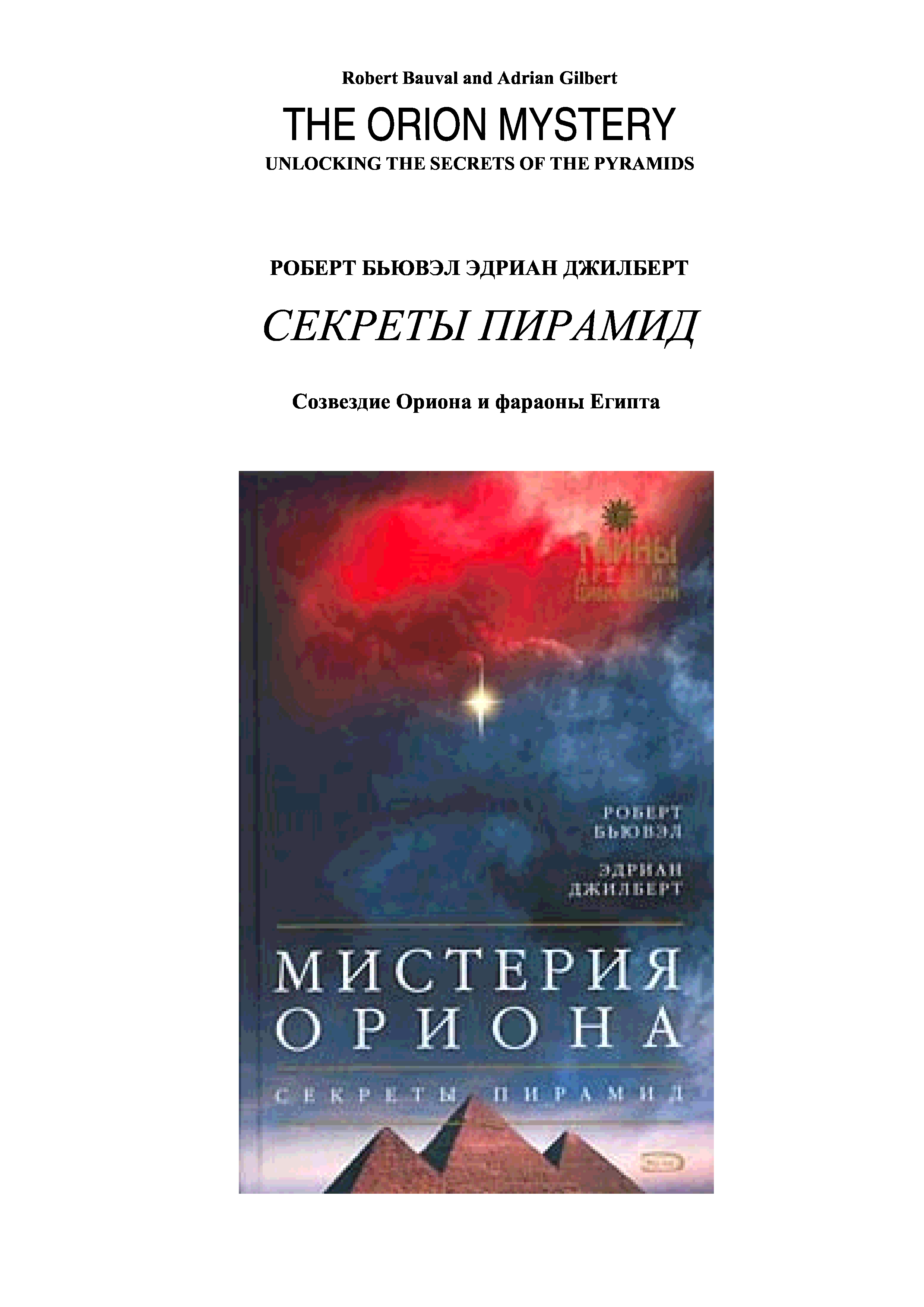 "Мистерия Ориона Секреты пирамид" - читать интересную книгу автора (РОБЕРТ БЬЮВЭЛ, ЭДРИАН ДЖИЛБЕРТ)