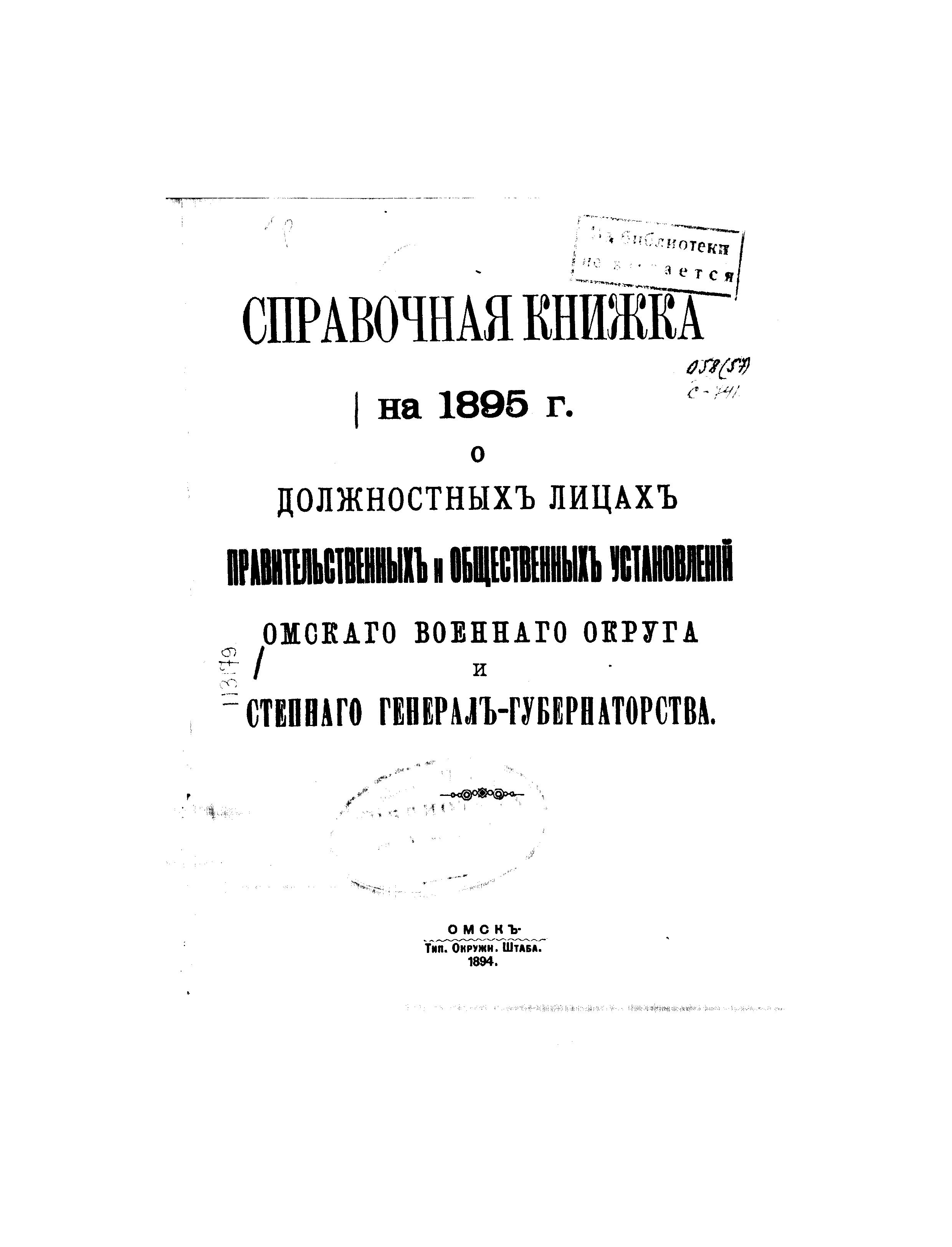 "Справочная книжка на 1895 год о должностных лицах правительственных и общественных установлений Омского военного округа и Степного генерал-губернаторства." - читать интересную книгу автора