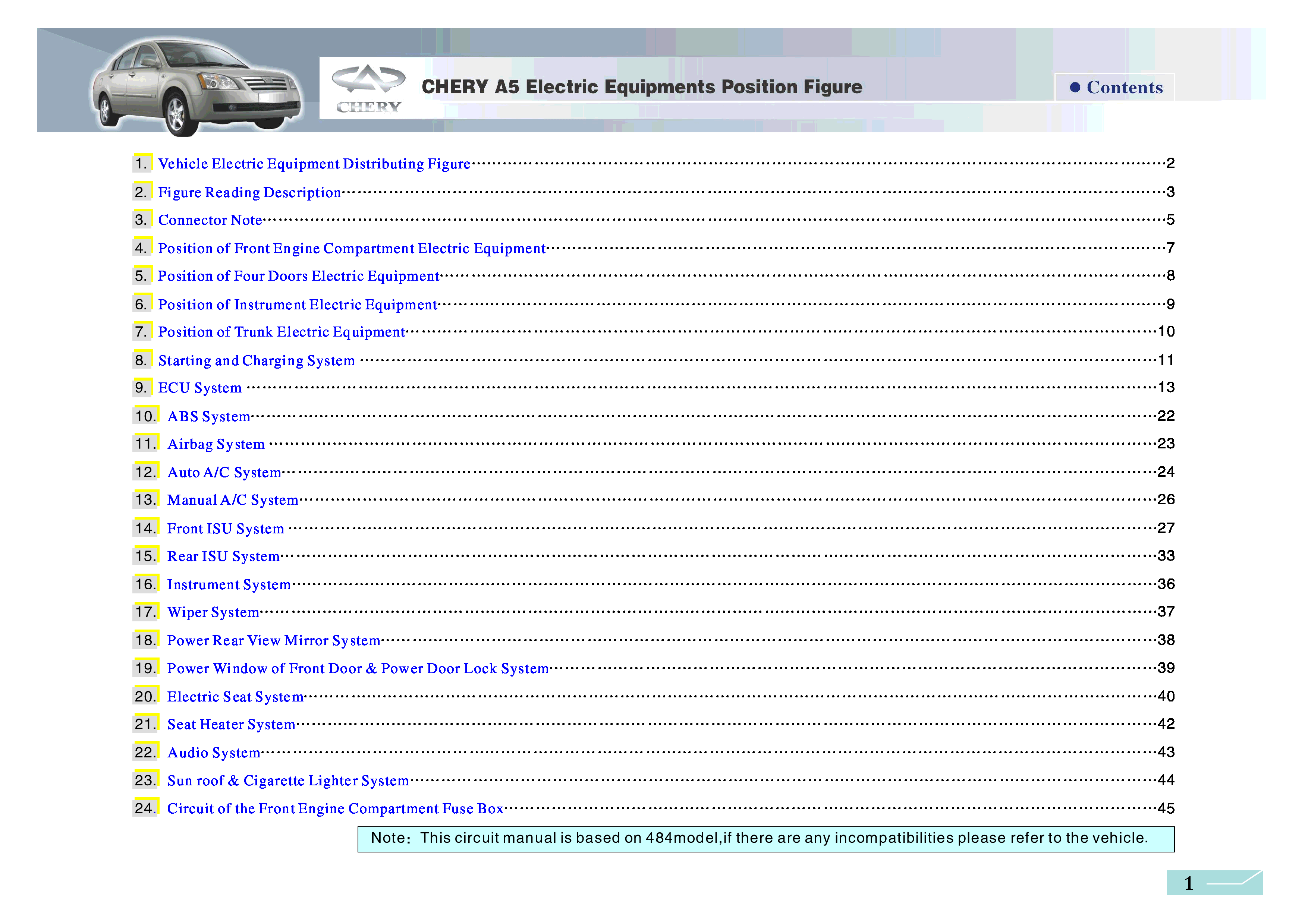 "Chery Fora / Elara Electric Equipments Position Figure" - читать интересную книгу автора