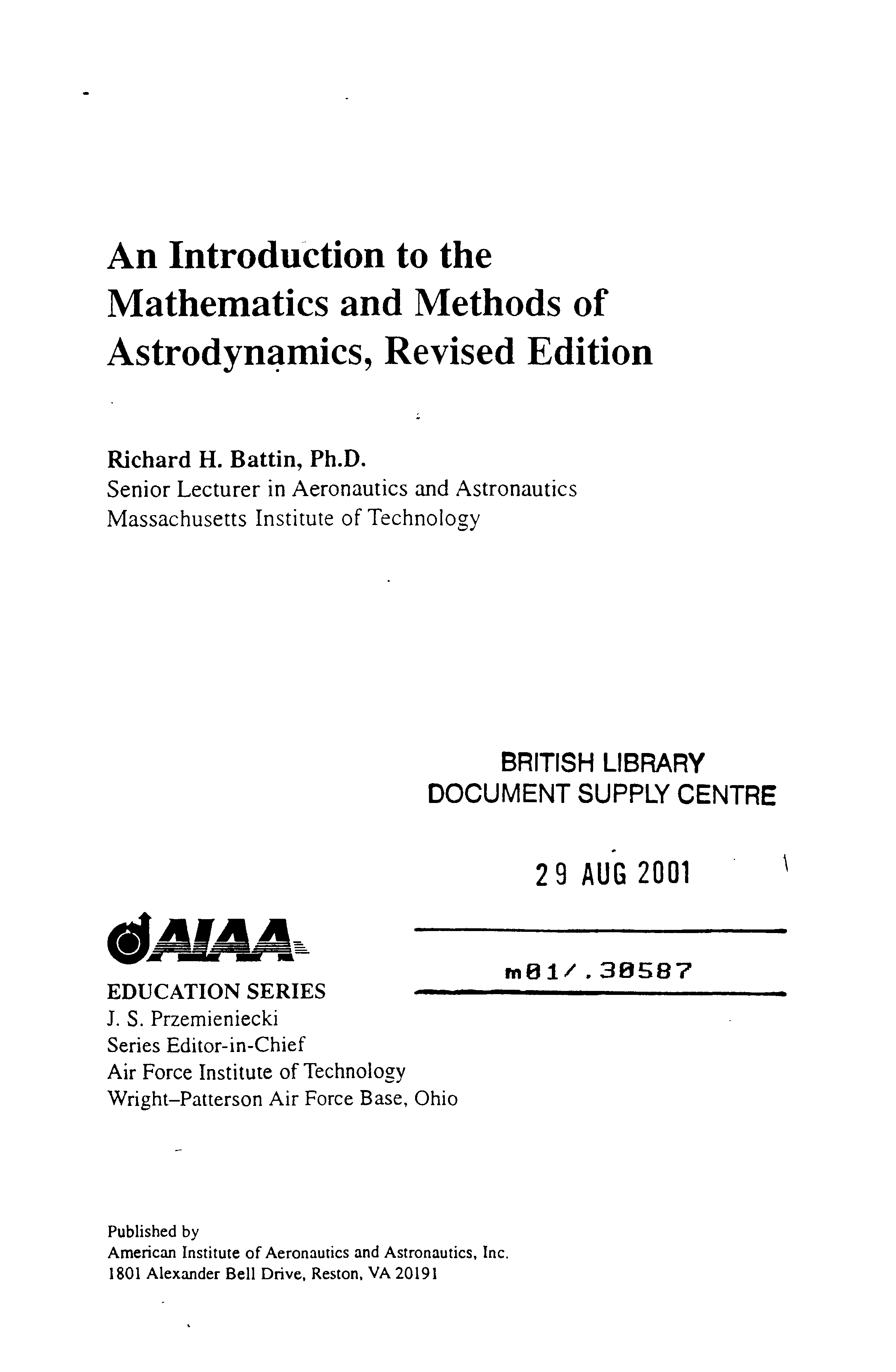 "An Introduction to the Mathematics and Methods of Astrodynamics, Revised Edition (AIAA Education) " - читать интересную книгу автора (Richard H. Battin, Massachusetts Institute of Te R. Battin)