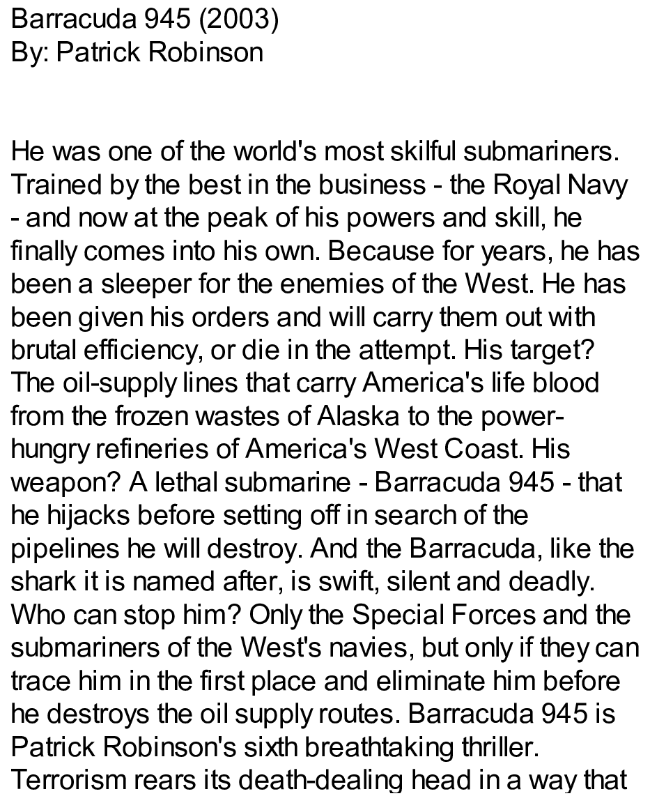 "Barracuda 945 " - читать интересную книгу автора (Patrick Robinson)