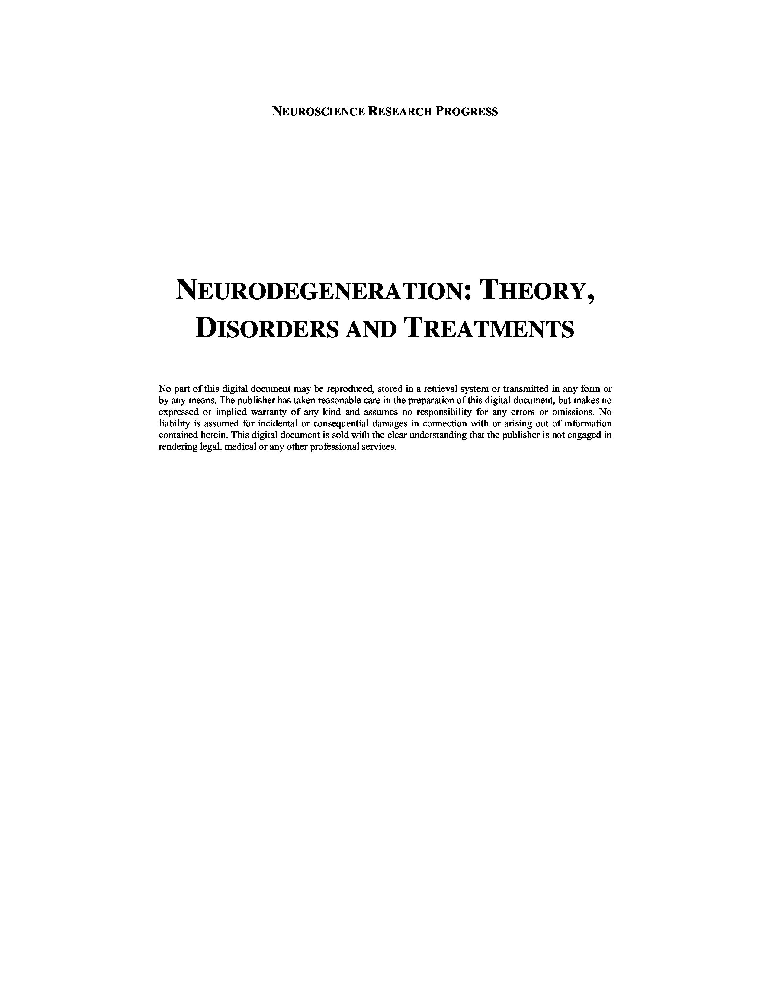 "Neurodegeneration: Theory, Disorders and Treatments (Neuroscience Research Progress) " - читать интересную книгу автора