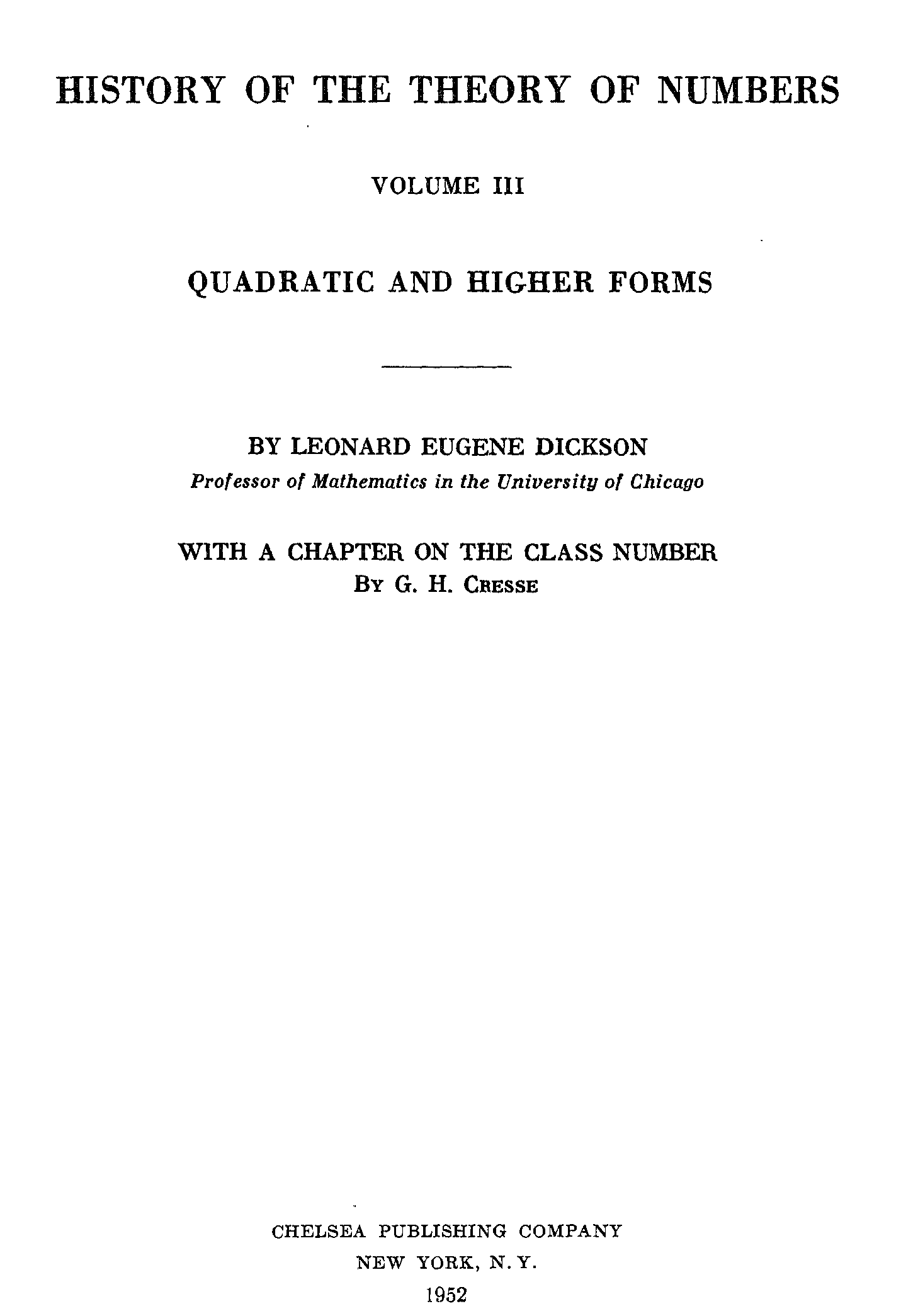 "History of the Theory of Numbers, Volume III: Quadratic and Higher Forms " - читать интересную книгу автора