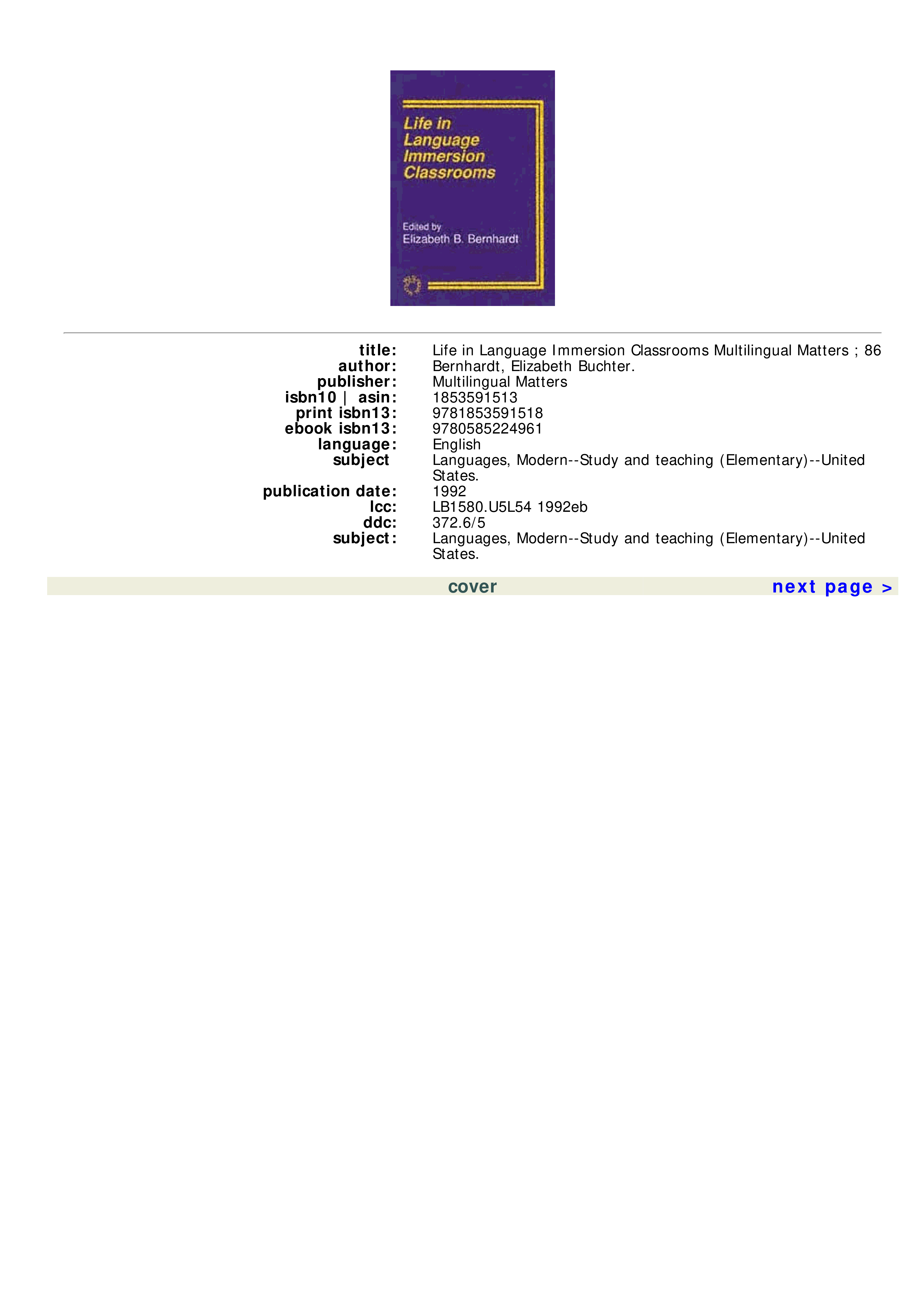 "Life in Language Immersion Classrooms " - читать интересную книгу автора