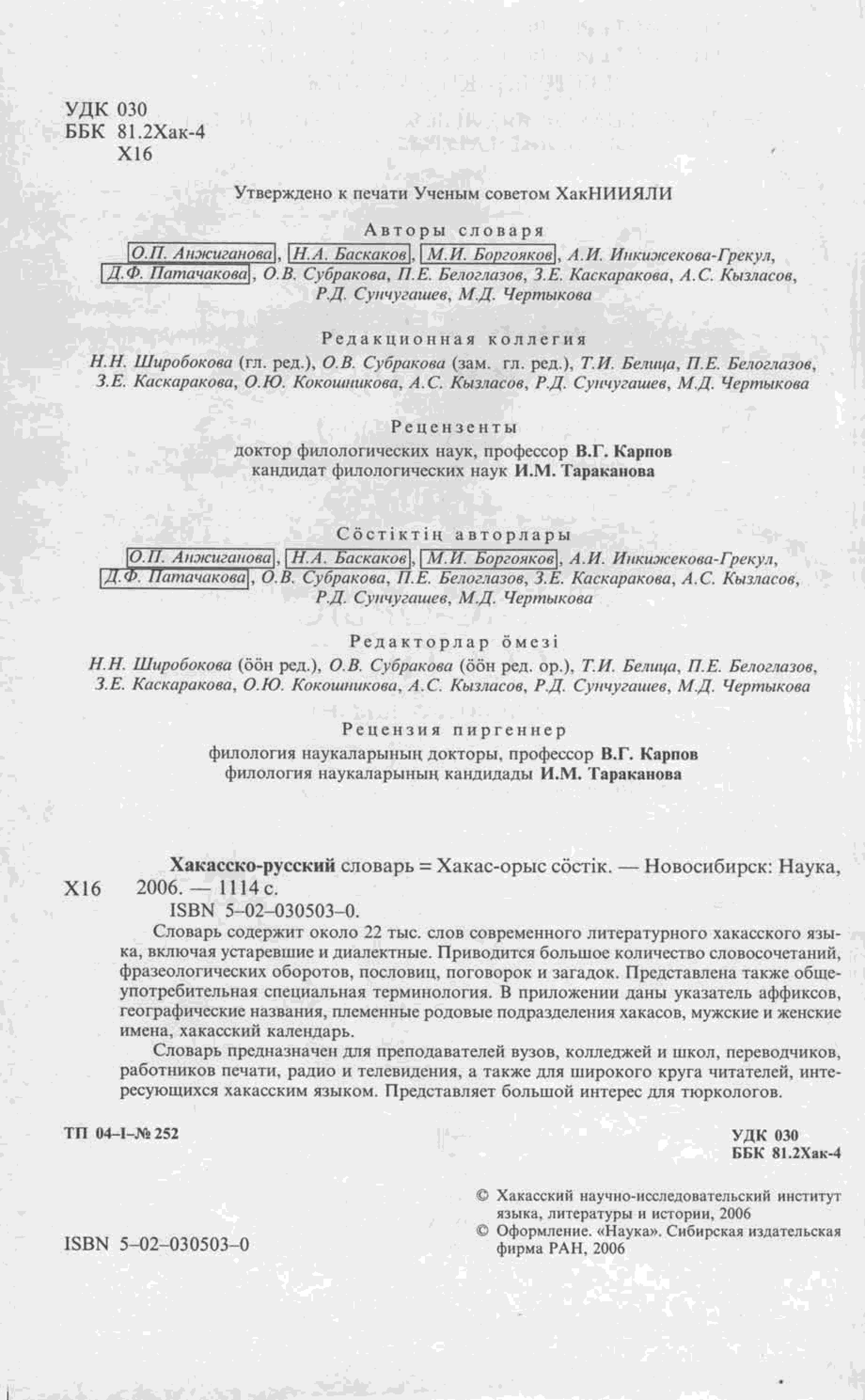 "Хакасско-русский словарь " - читать интересную книгу автора