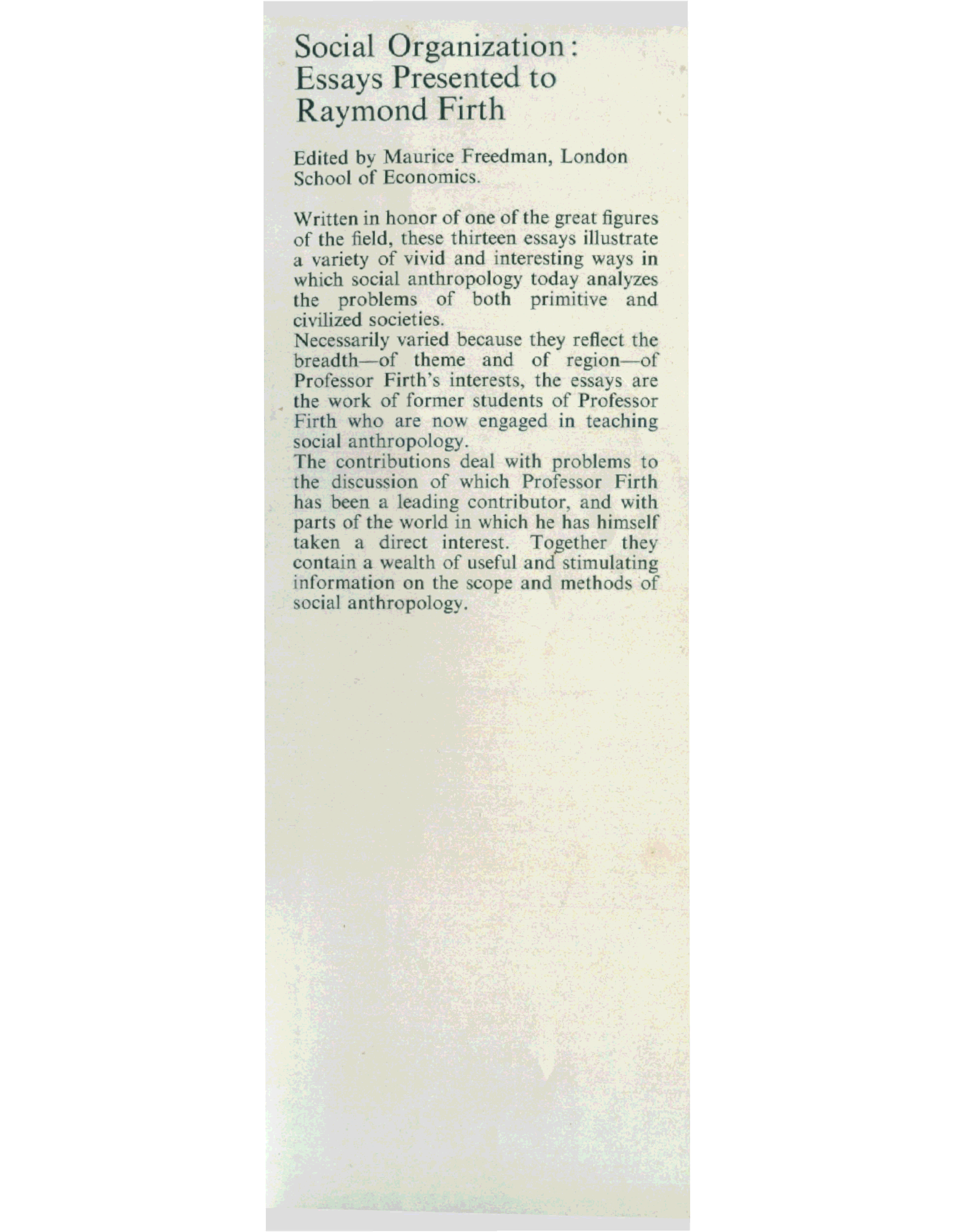 "Social Organization: Essays Presented to Raymond Firth " - читать интересную книгу автора