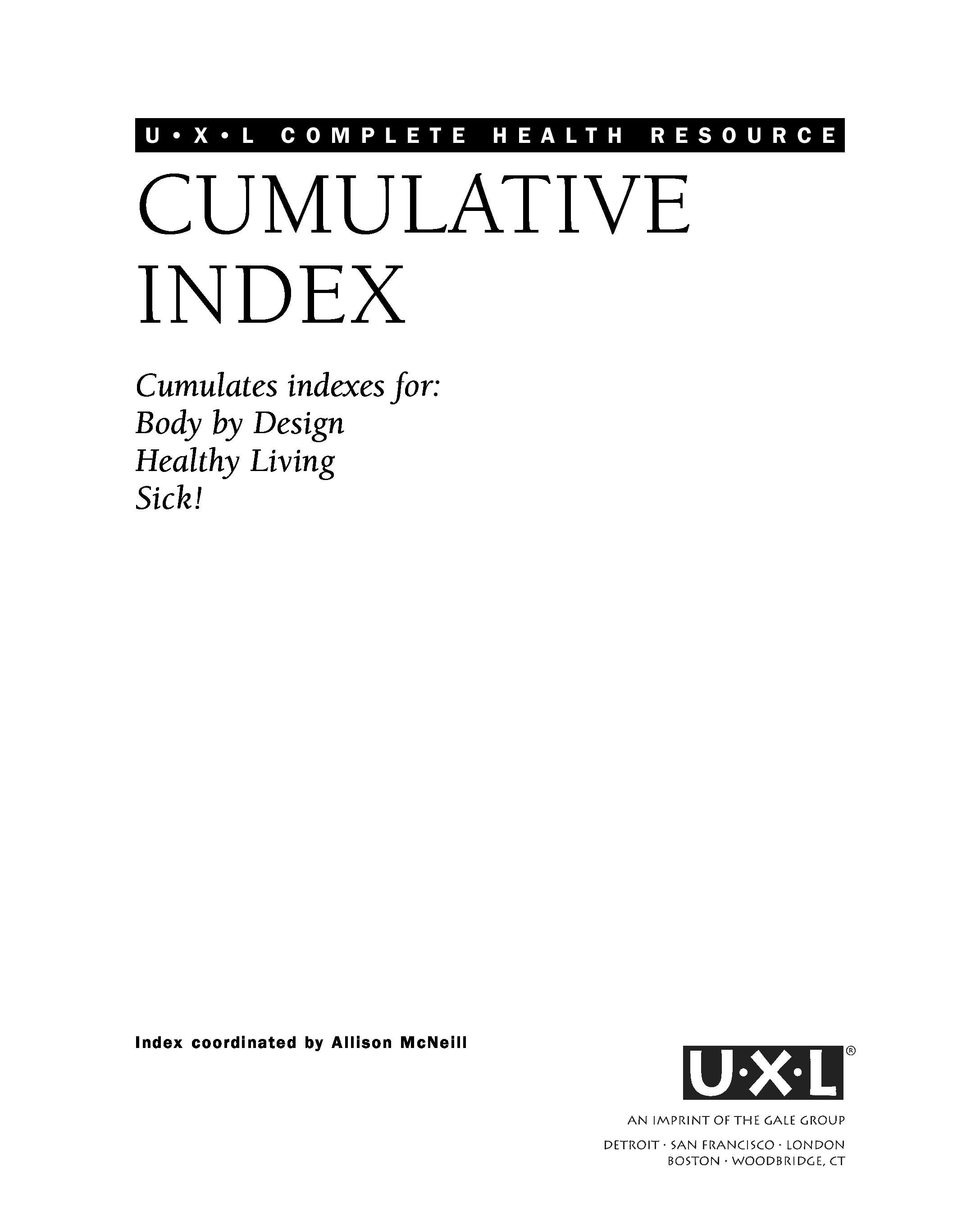 "U·X·L complete health resource cumulative index " - читать интересную книгу автора