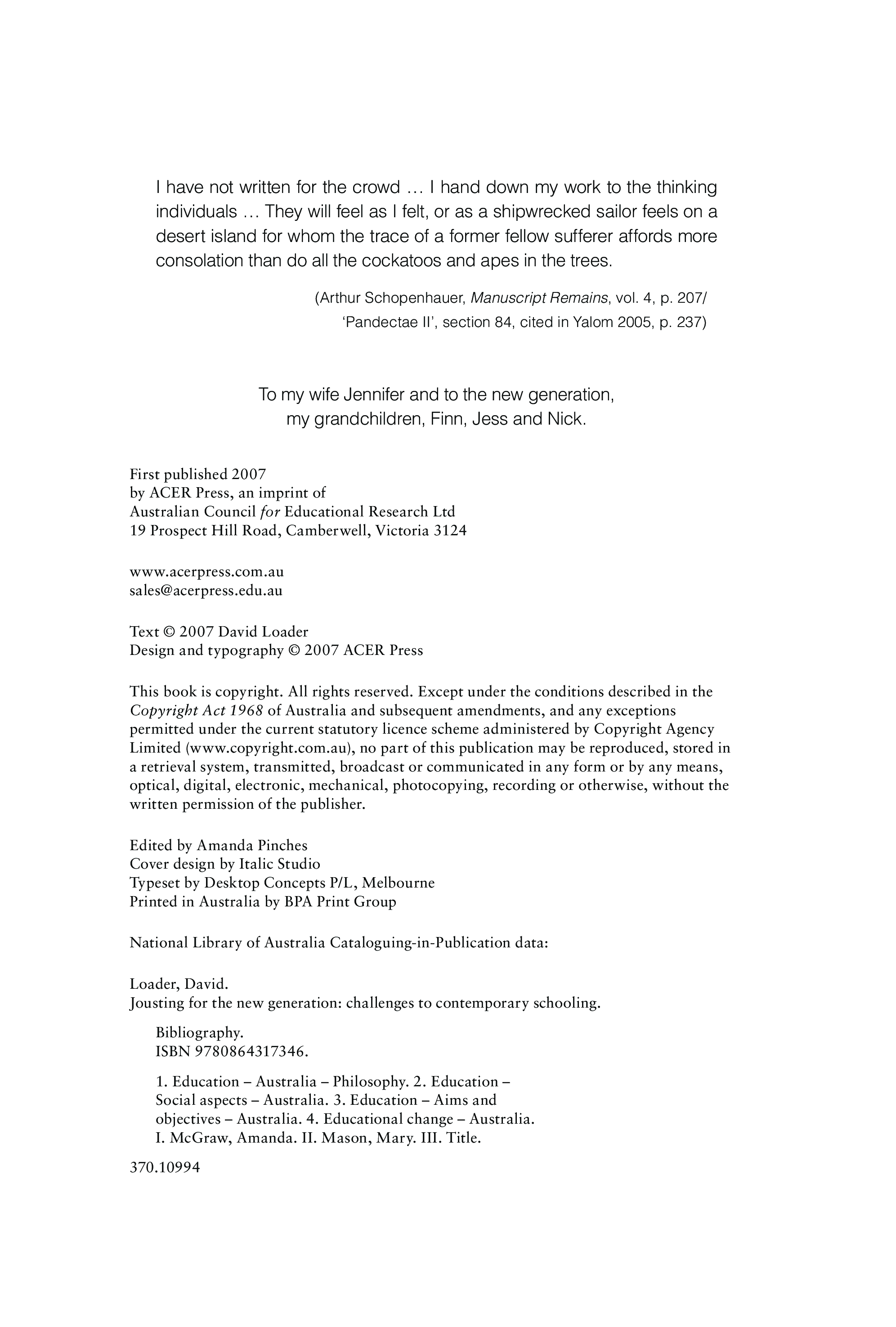 "Jousting for the New Generation: Challenges to Contemporary Schooling " - читать интересную книгу автора