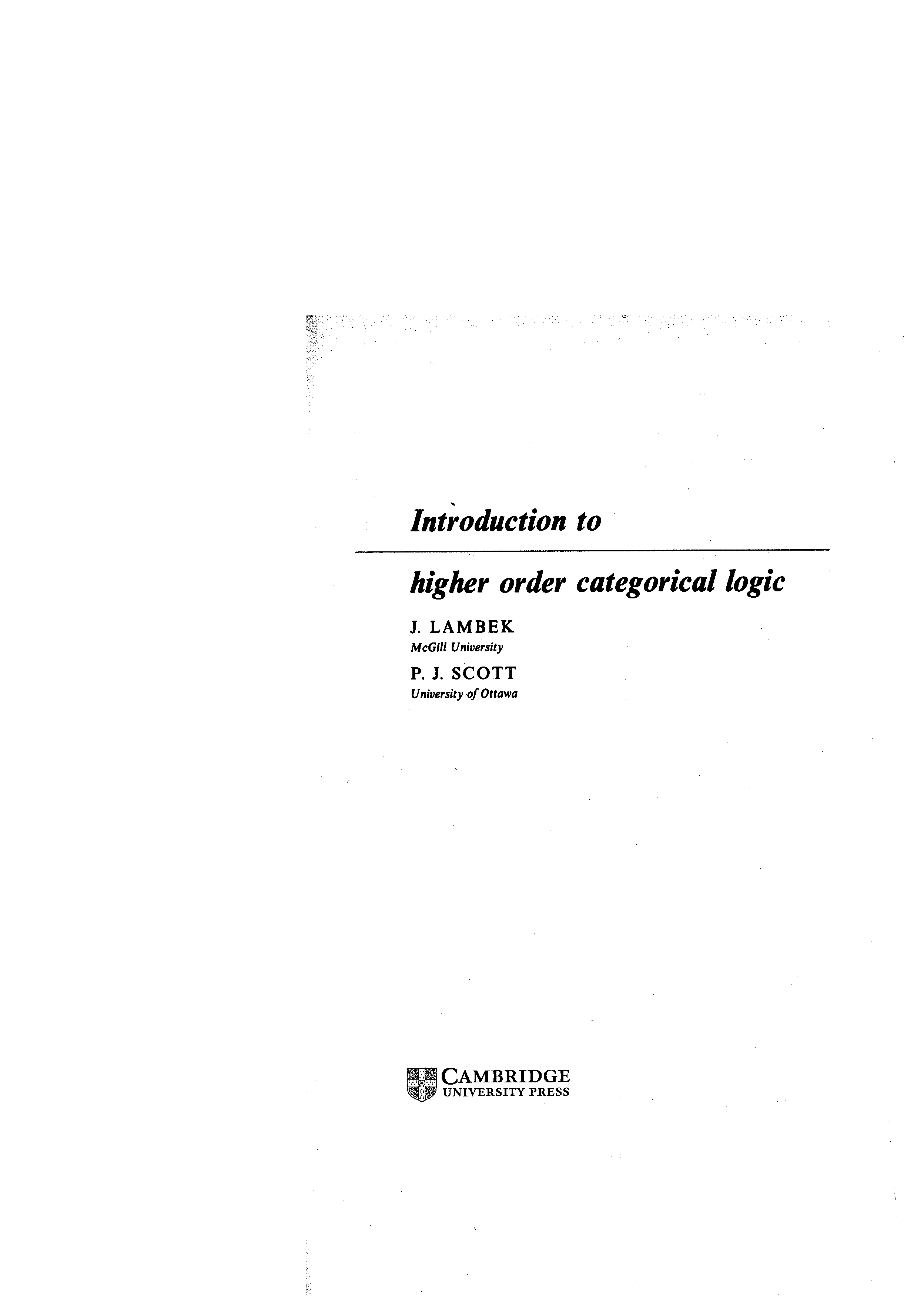 "Introduction to Higher-Order Categorical Logic (Cambridge Studies in Advanced Mathematics) " - читать интересную книгу автора (J. Lambek, P.J. Scott)