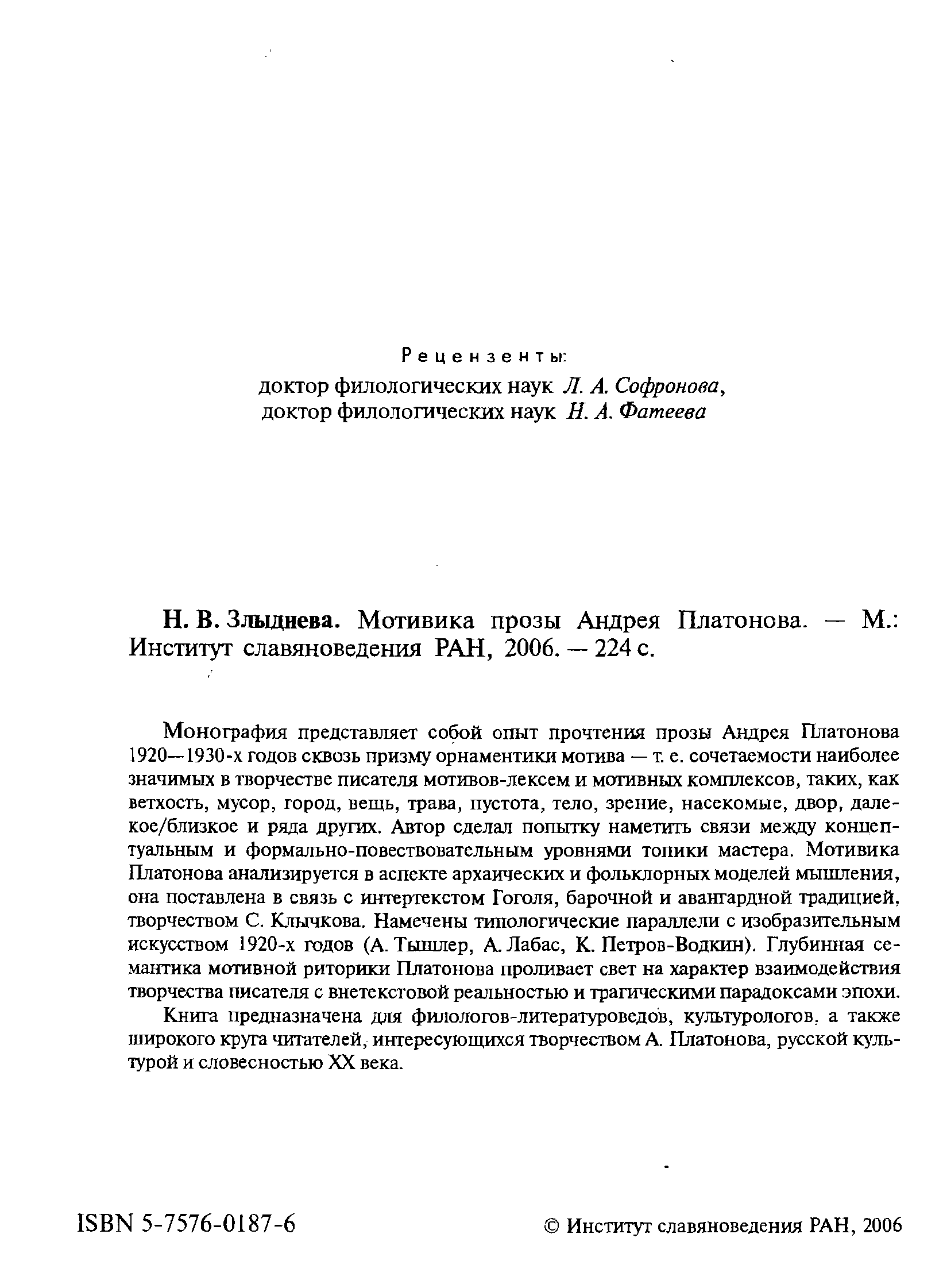 "Мотивика прозы Андрея Платонова " - читать интересную книгу автора