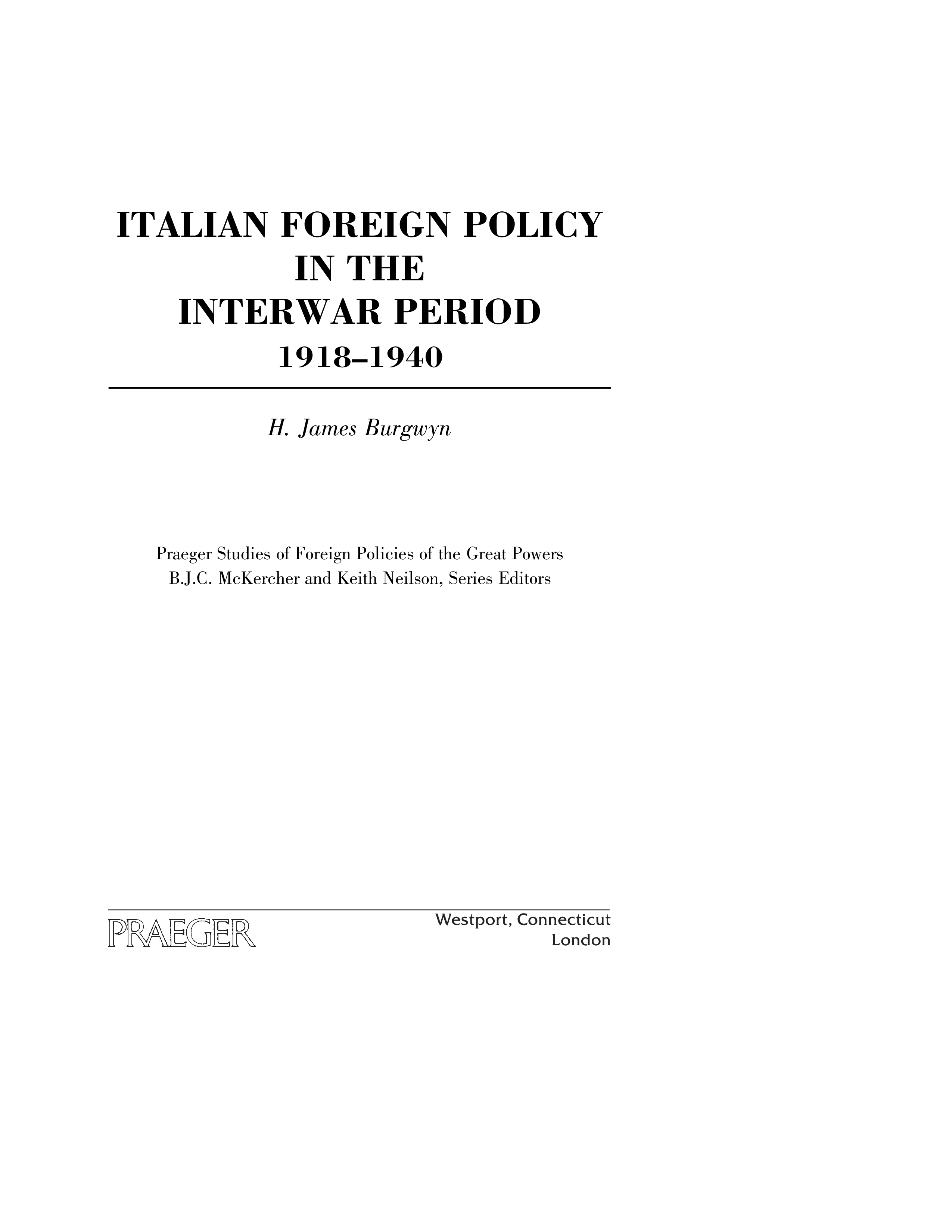 "Italian Foreign Policy in the Interwar Period: 1918-1940 (Praeger Studies of Foreign Policies of the Great Powers) " - читать интересную книгу автора