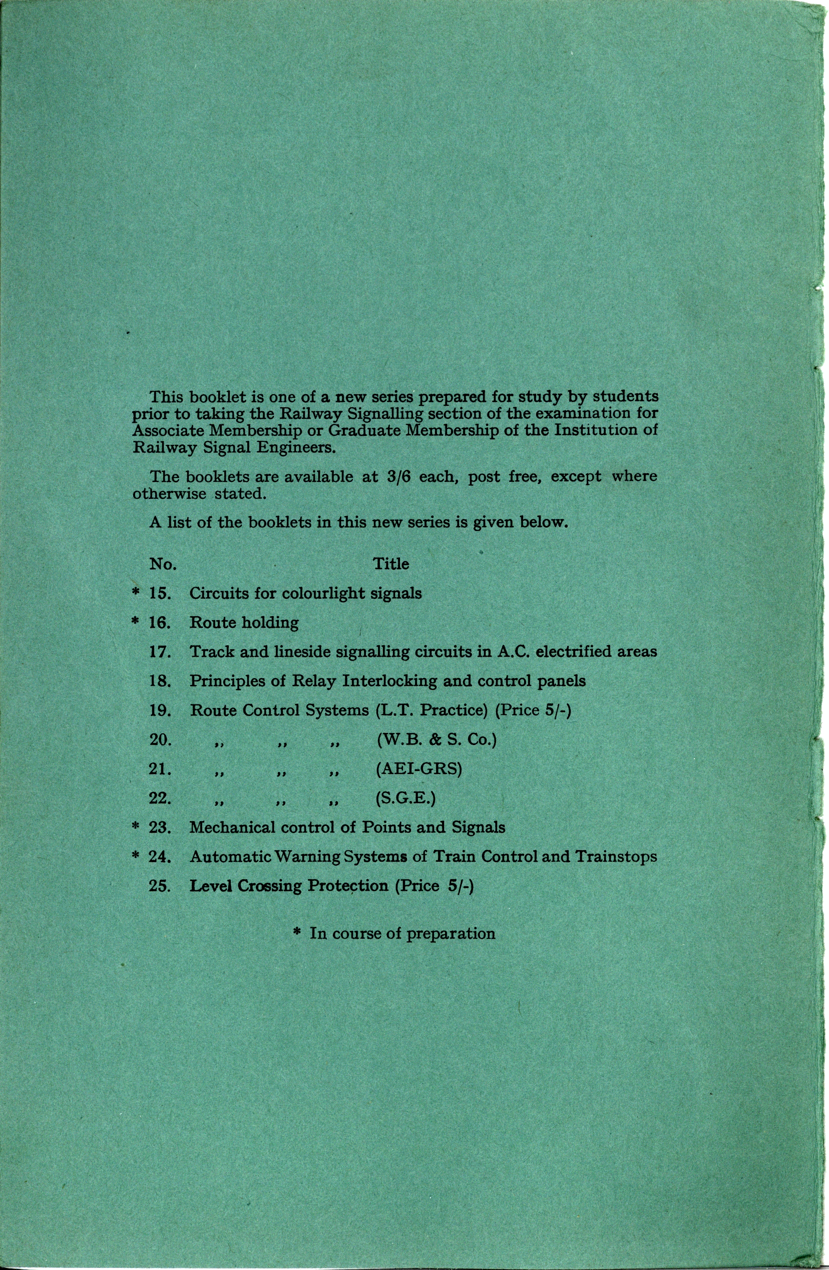 "IRSE Green Book No.19 Route Control Systems (L.T. Practice) 1963 " - читать интересную книгу автора