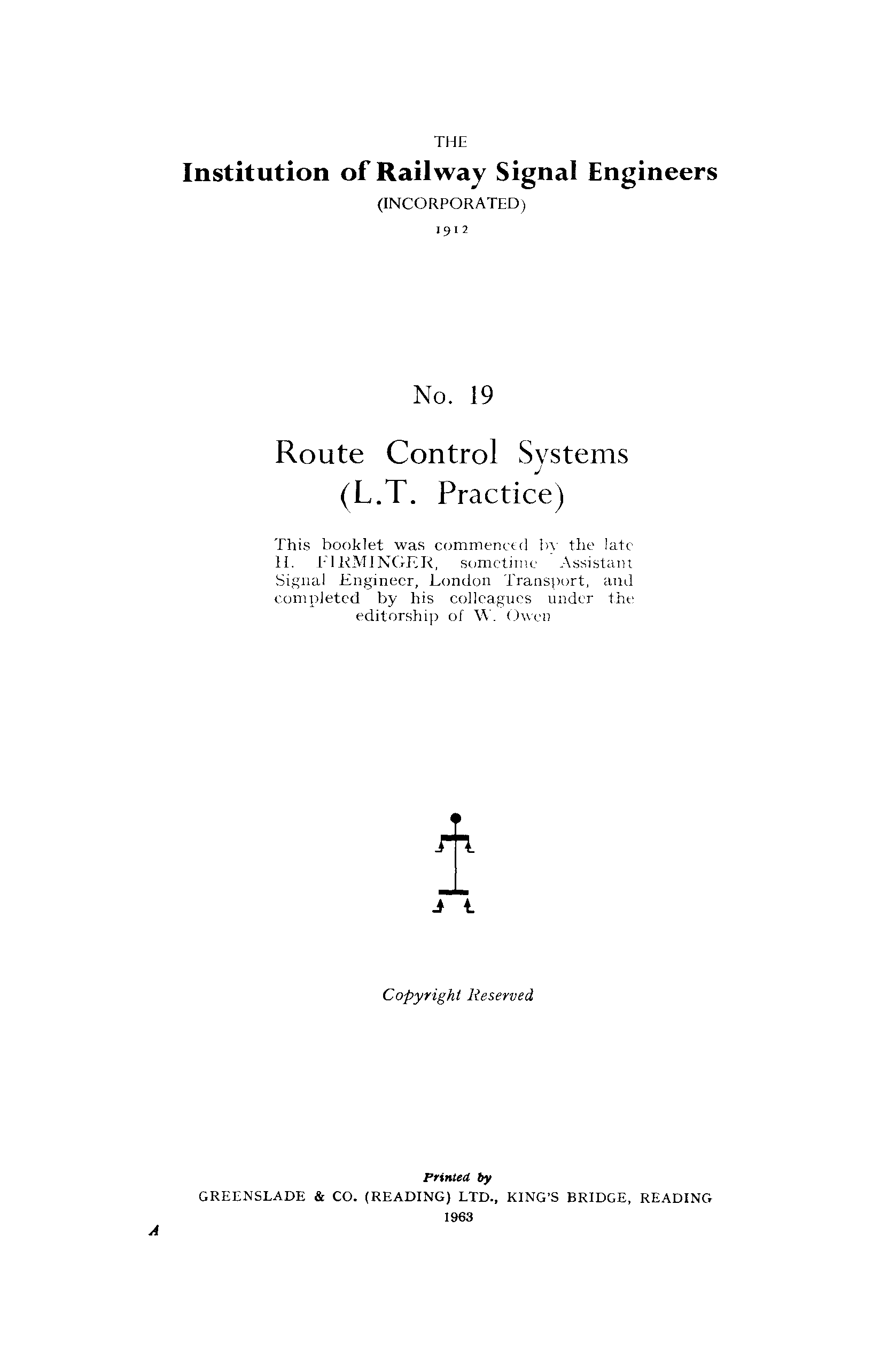 "IRSE Green Book No.19 Route Control Systems (L.T. Practice) 1963 " - читать интересную книгу автора (Institution of Railway Signal Engineers (IRSE)