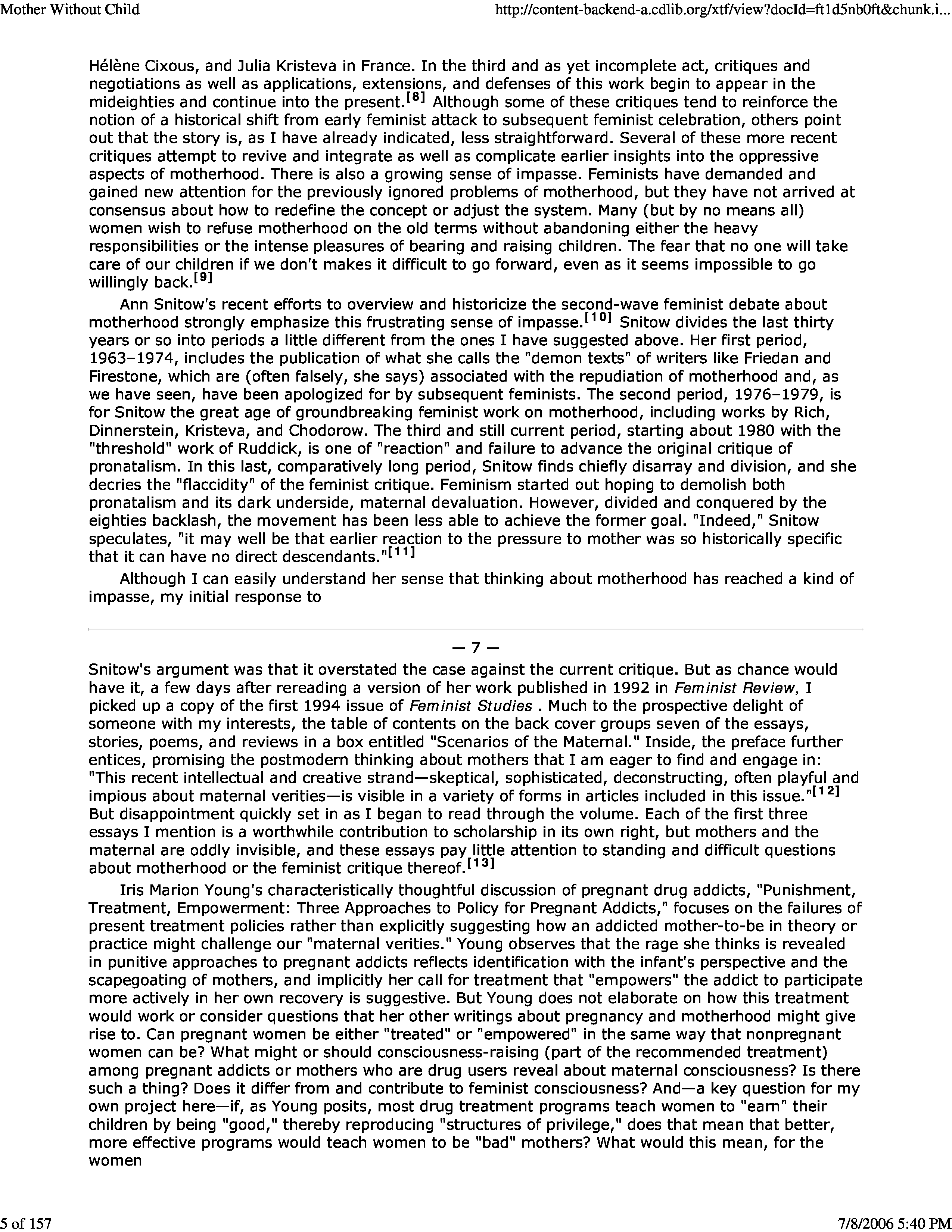"Mother Without Child: Contemporary Fiction and the Crisis of Motherhood " - читать интересную книгу автора