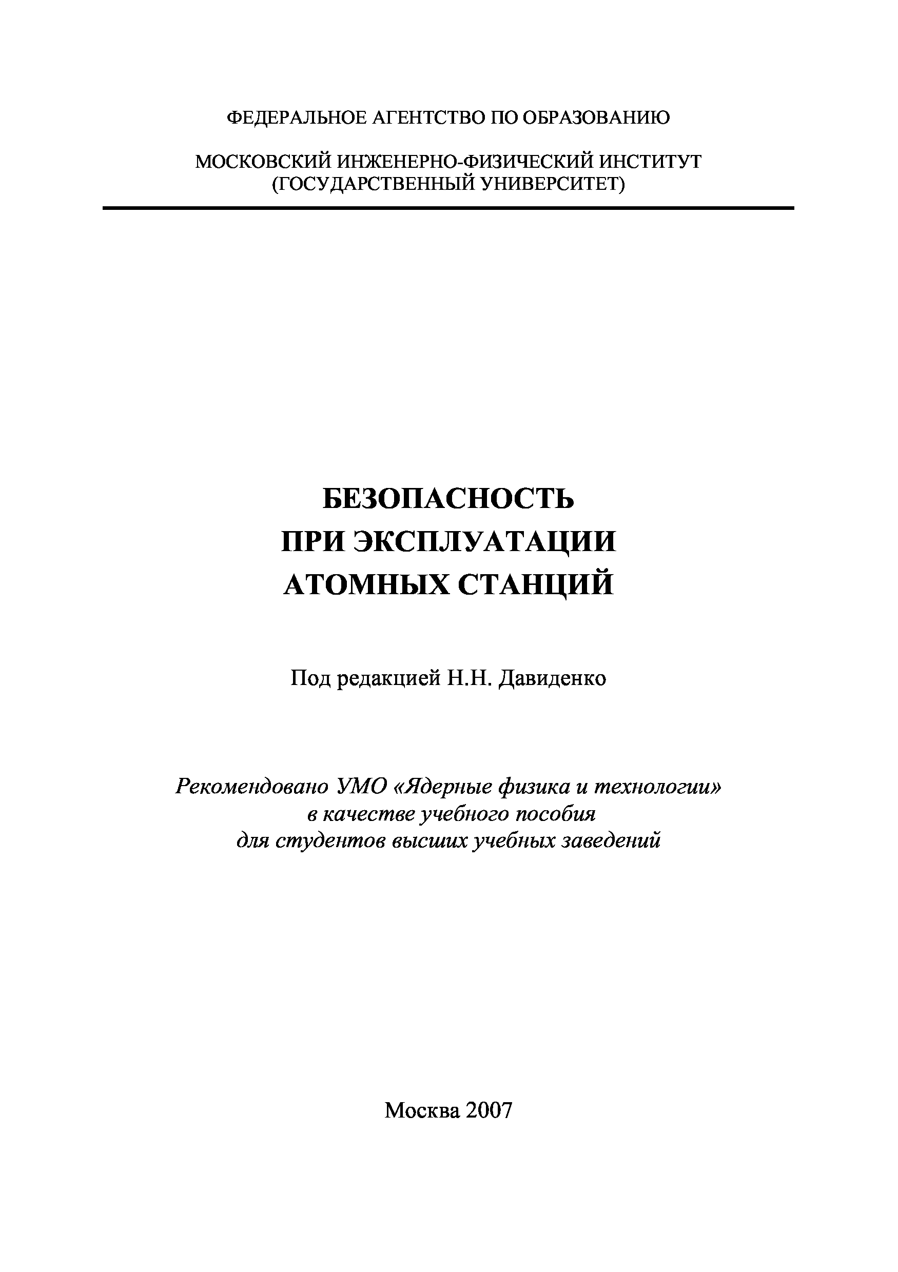"БЕЗОПАСНОСТЬ ПРИ ЭКСПЛУАТАЦИИ АТОМНЫХ СТАНЦИЙ" - читать интересную книгу автора