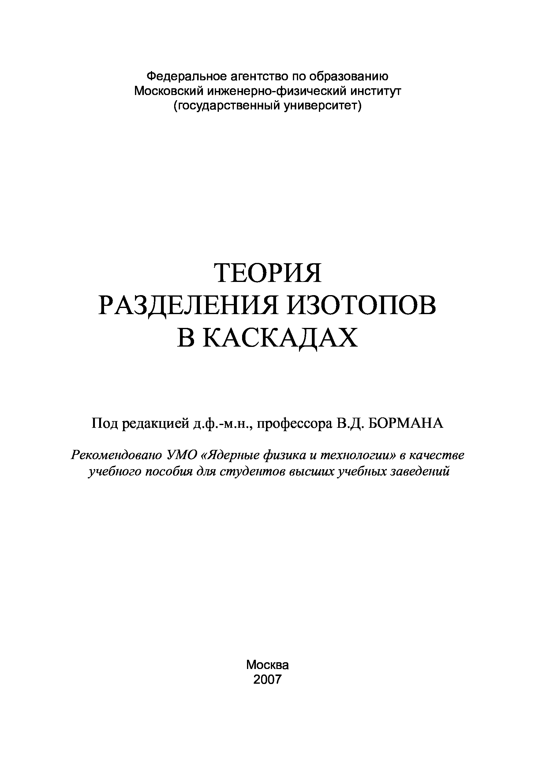 "Теория разделения изотопов в каскадах: [учеб. пособие]" - читать интересную книгу автора