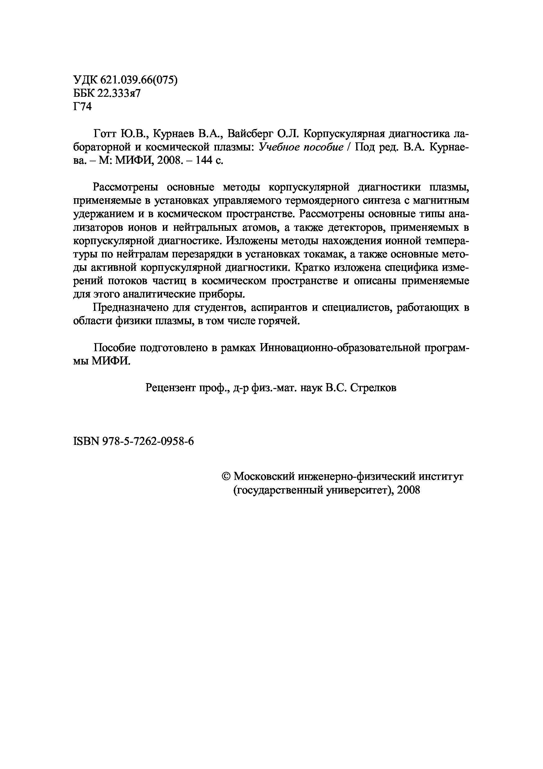 "Корпускулярная диагностика лабораторной и космической плазмы: [учеб. пособие для вузов]" - читать интересную книгу автора (Ю.В. Готт, В.А Курнаев., О.Л. Вайсберг)