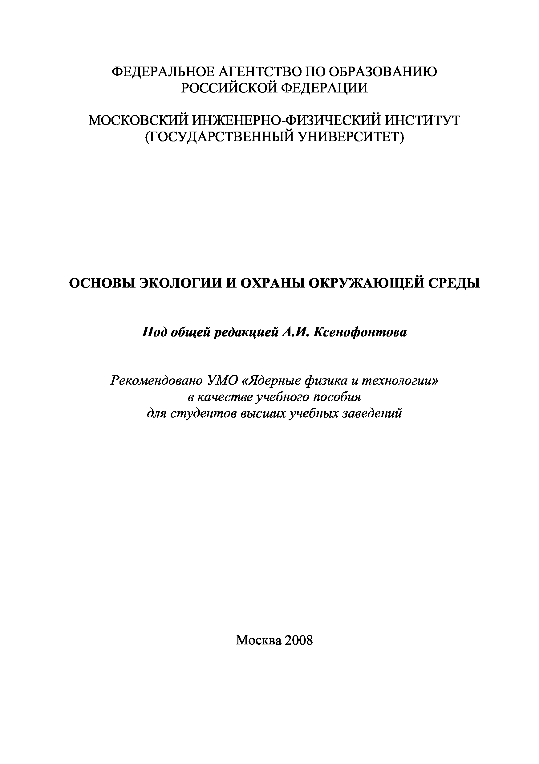 "ОСНОВЫ ЭКОЛОГИИ И ОХРАНЫ ОКРУЖАЮЩЕЙ СРЕДЫ" - читать интересную книгу автора