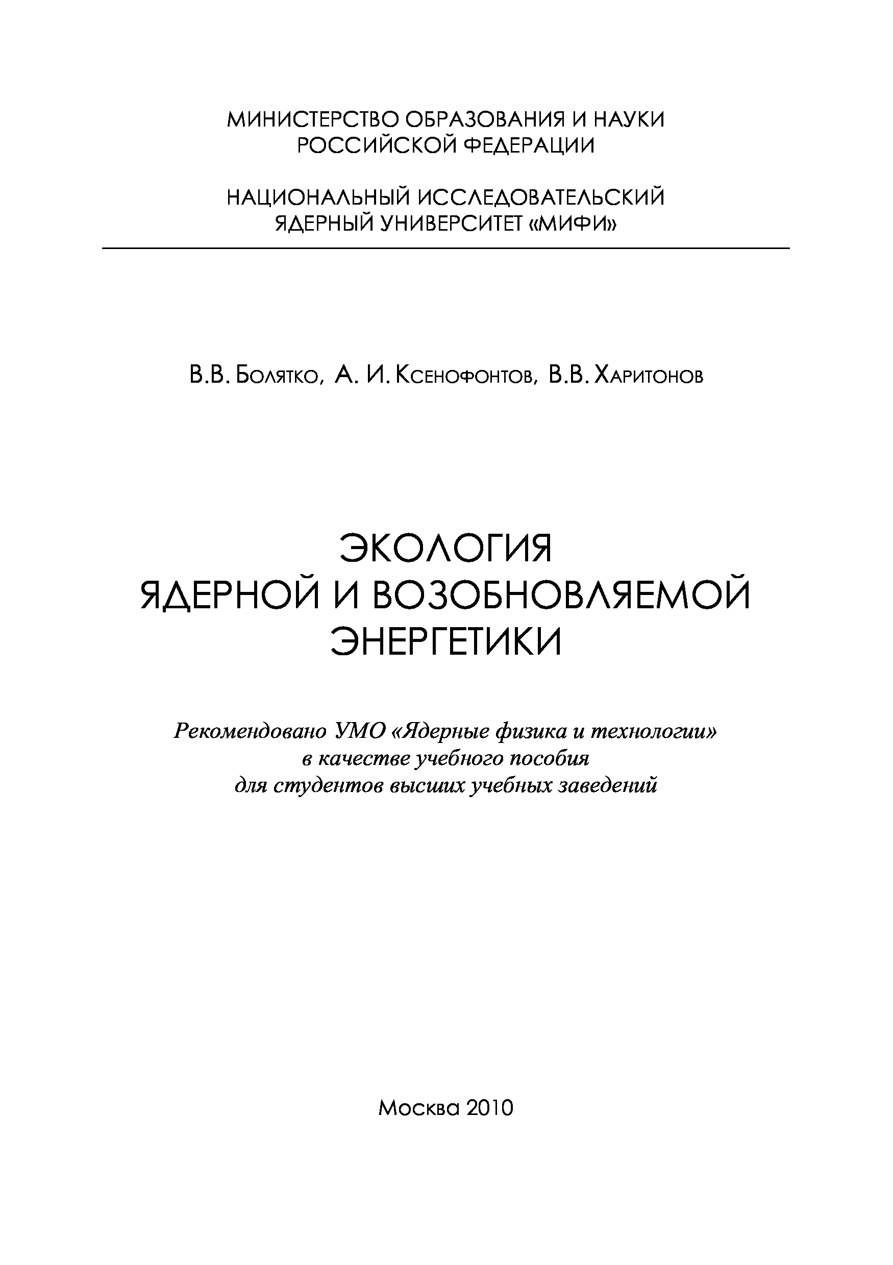 "Экология ядерной и возобновляемой энергетики: Учебное пособие" - читать интересную книгу автора (Болятко В.В., Ксенофонтов А.И., Харитонов В.В. )