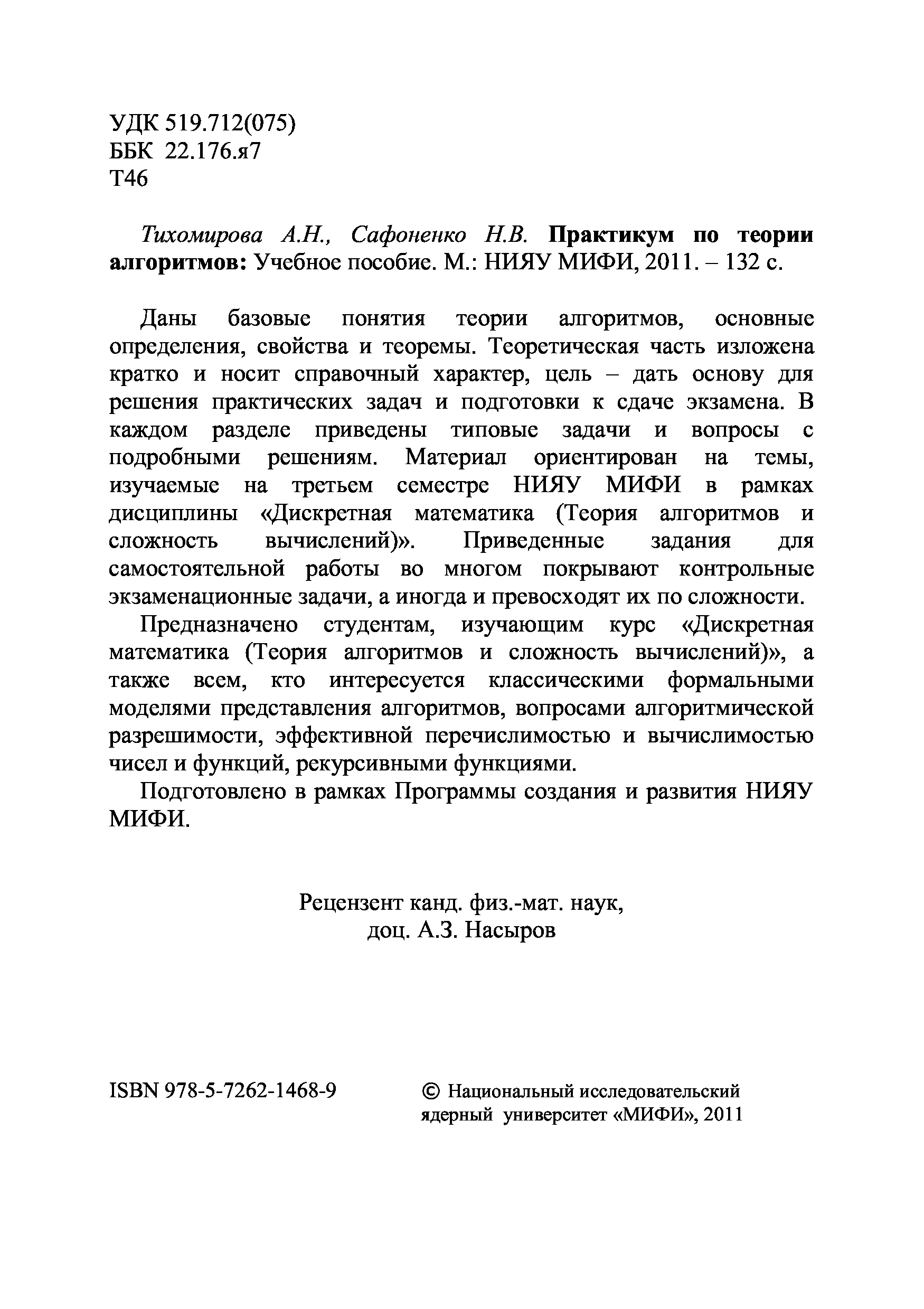 "Практикум по теории алгоритмов: Учебное пособие" - читать интересную книгу автора (Тихомирова А.Н., Сафоненко Н.В. )