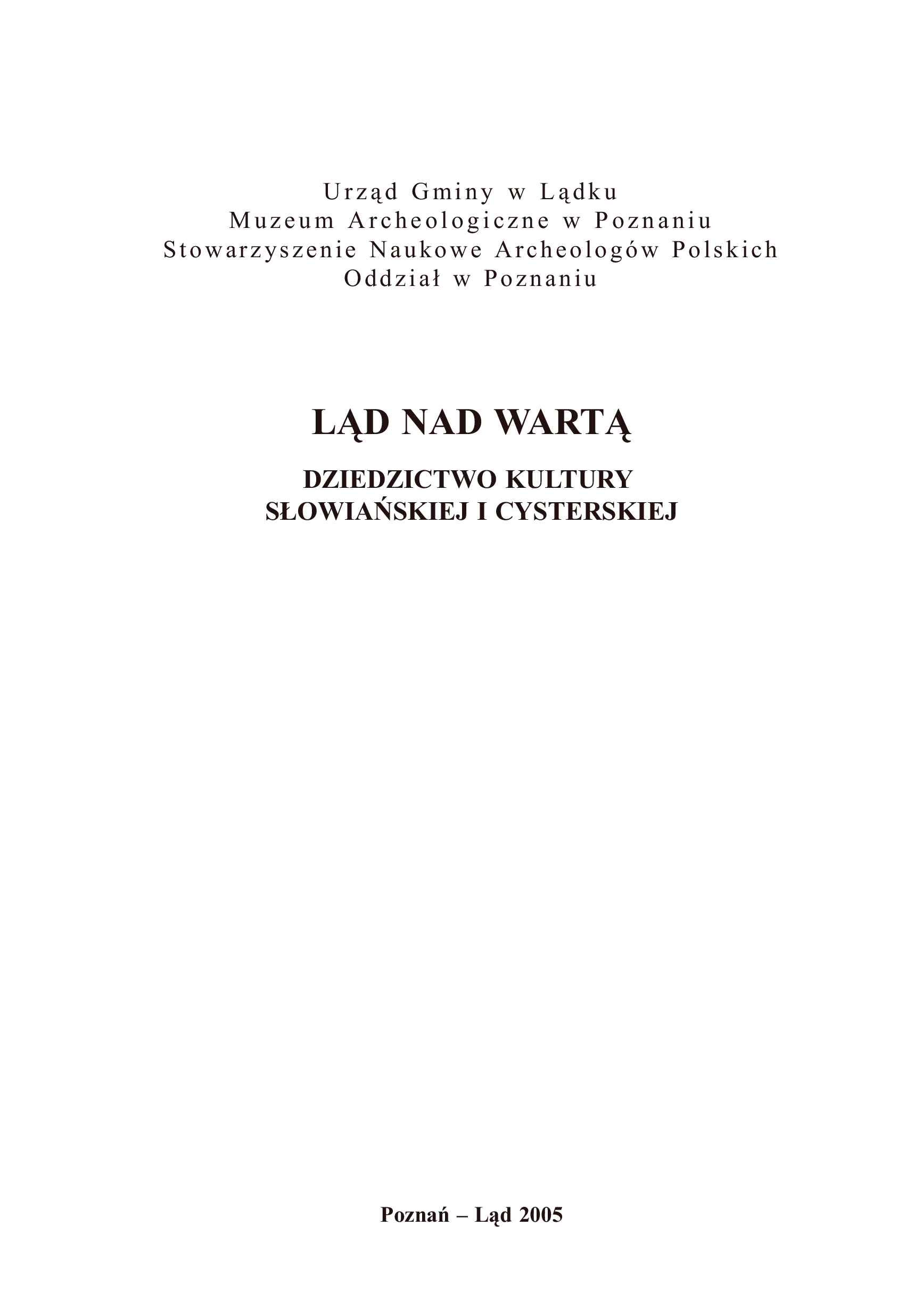 "Ląd nad Wartą: dziedzictwo kultury słowiańskiej i cysterskiej" - читать интересную книгу автора