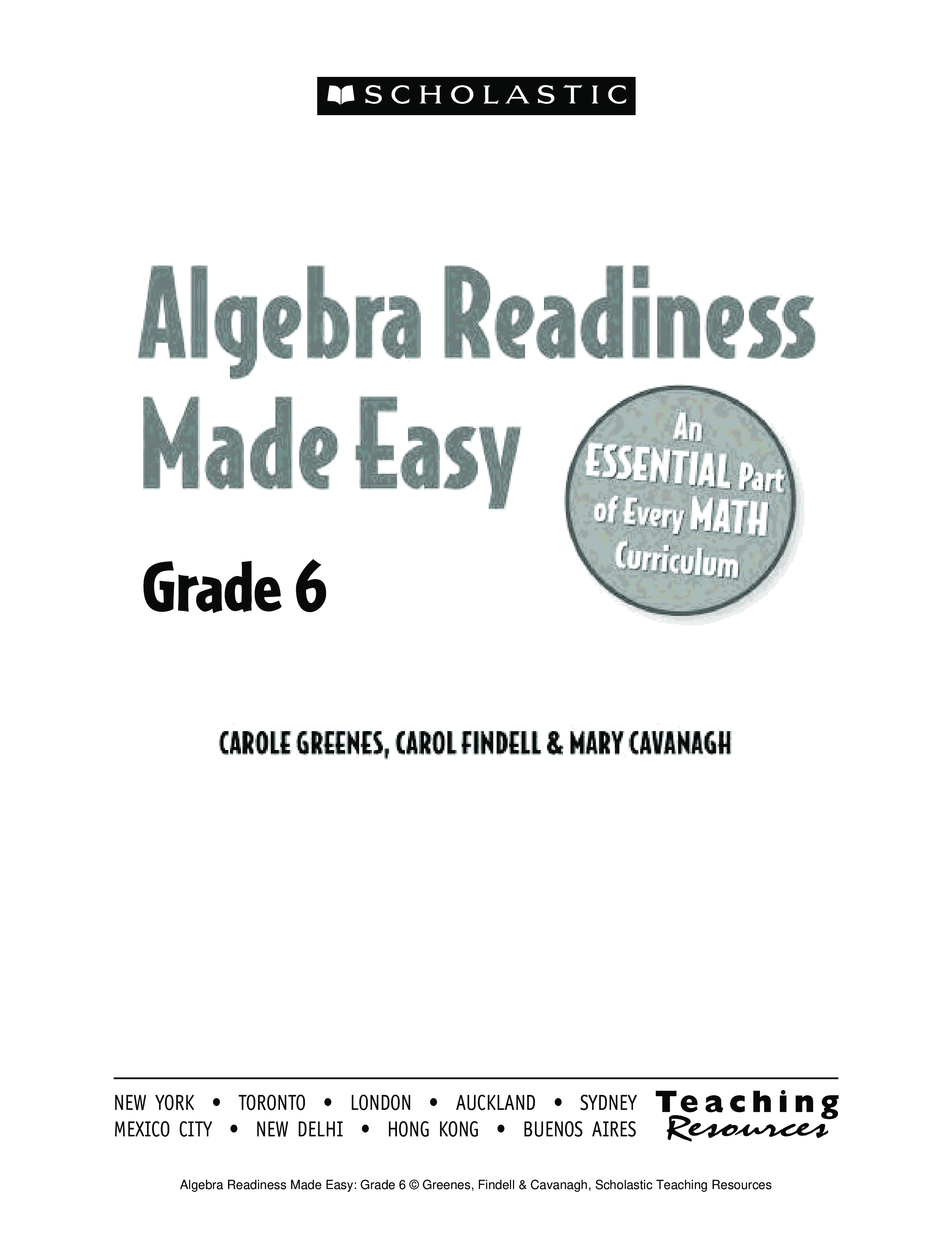"Algebra Readiness Made Easy: Grade 6: An Essential Part of Every Math Curriculum (Best Practices in Action)" - читать интересную книгу автора (Mary Cavanagh, Carol Findell, Carole Greenes)