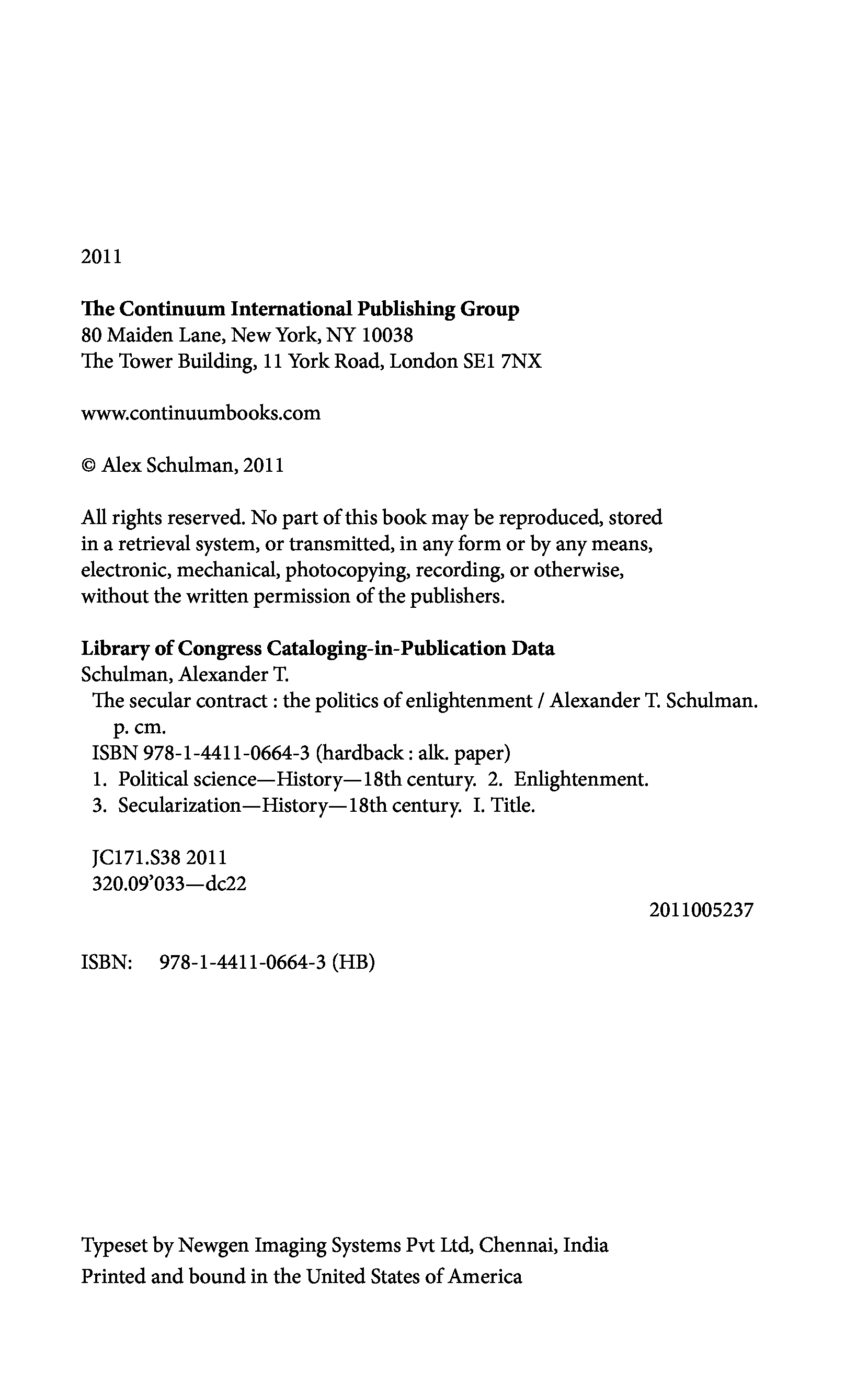 "The Secular Contract: The Politics of Enlightenment" - читать интересную книгу автора