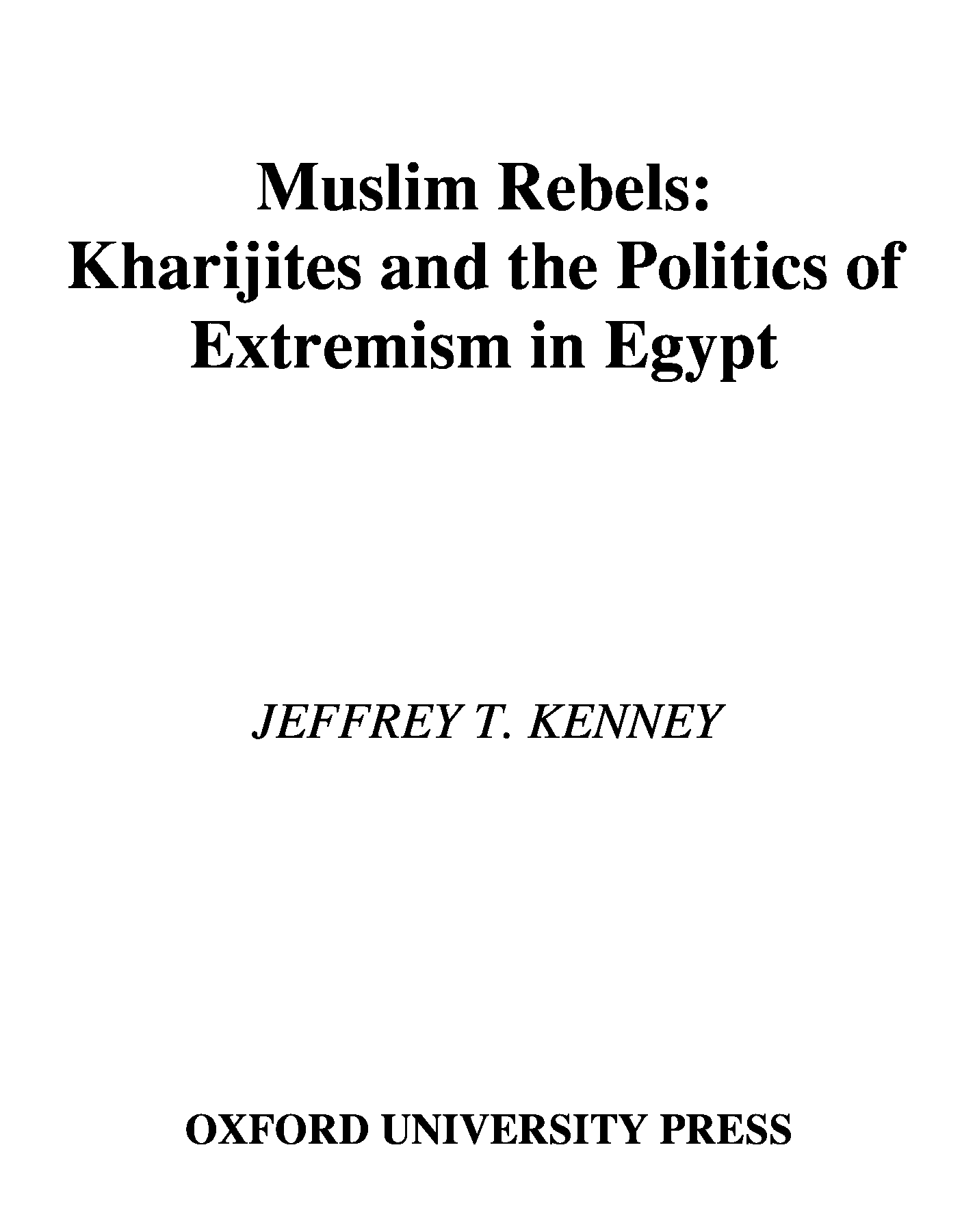 "Muslim rebels: Kharijites and the politics of extremism in Egypt" - читать интересную книгу автора (Jeffrey Thomas Kenney)