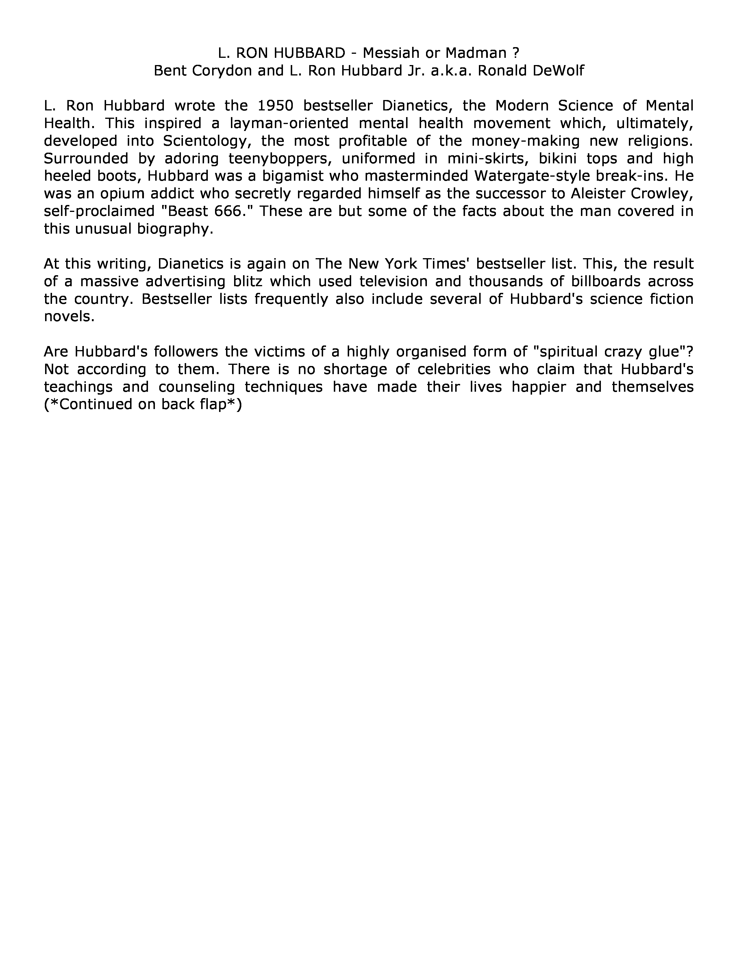 "L. Ron Hubbard, Messiah or Madman?" - читать интересную книгу автора