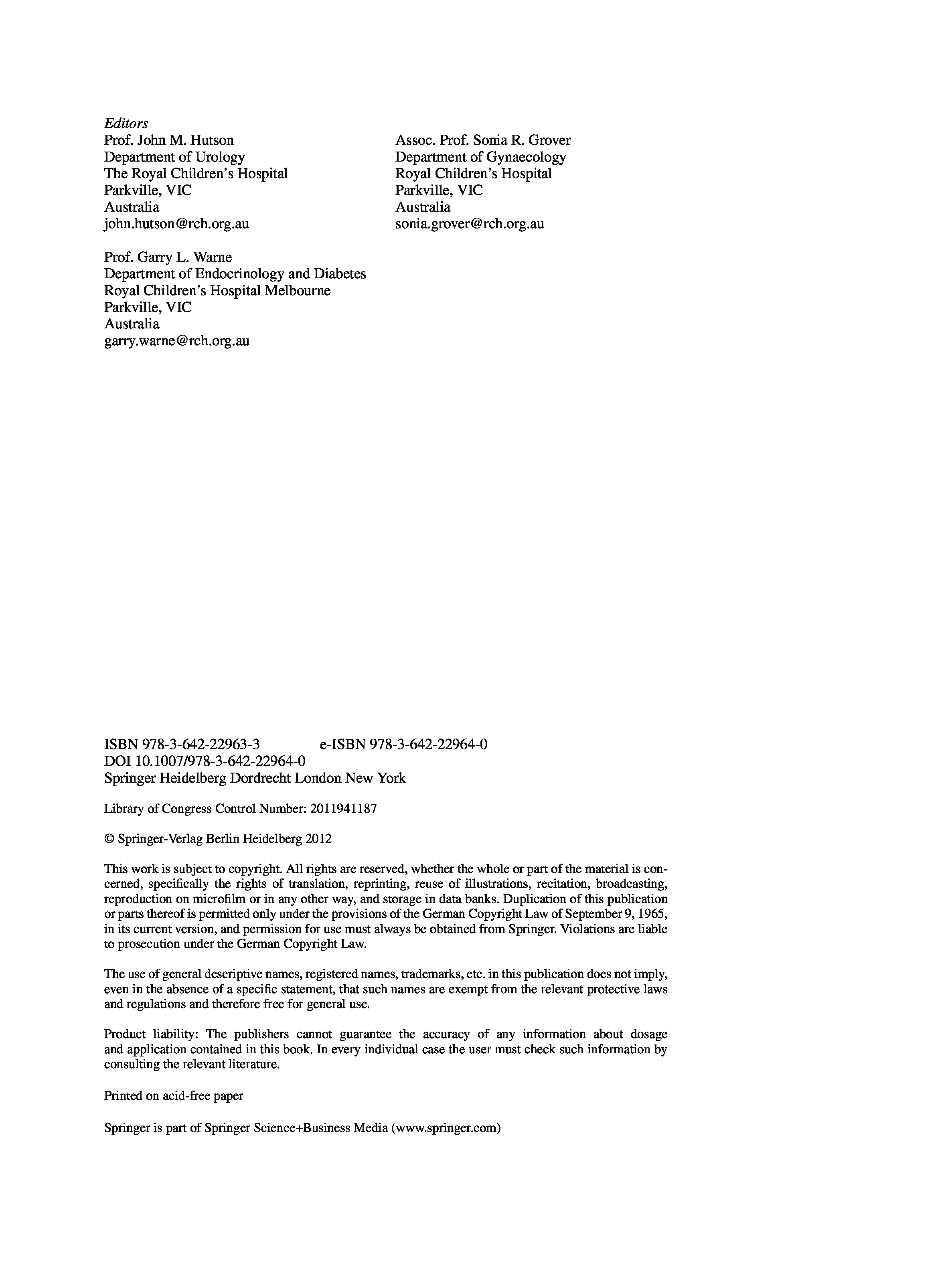 "Disorders of Sex Development: An Integrated Approach to Management" - читать интересную книгу автора (John M. Hutson, Garry L. Warne, Sonia Grover)