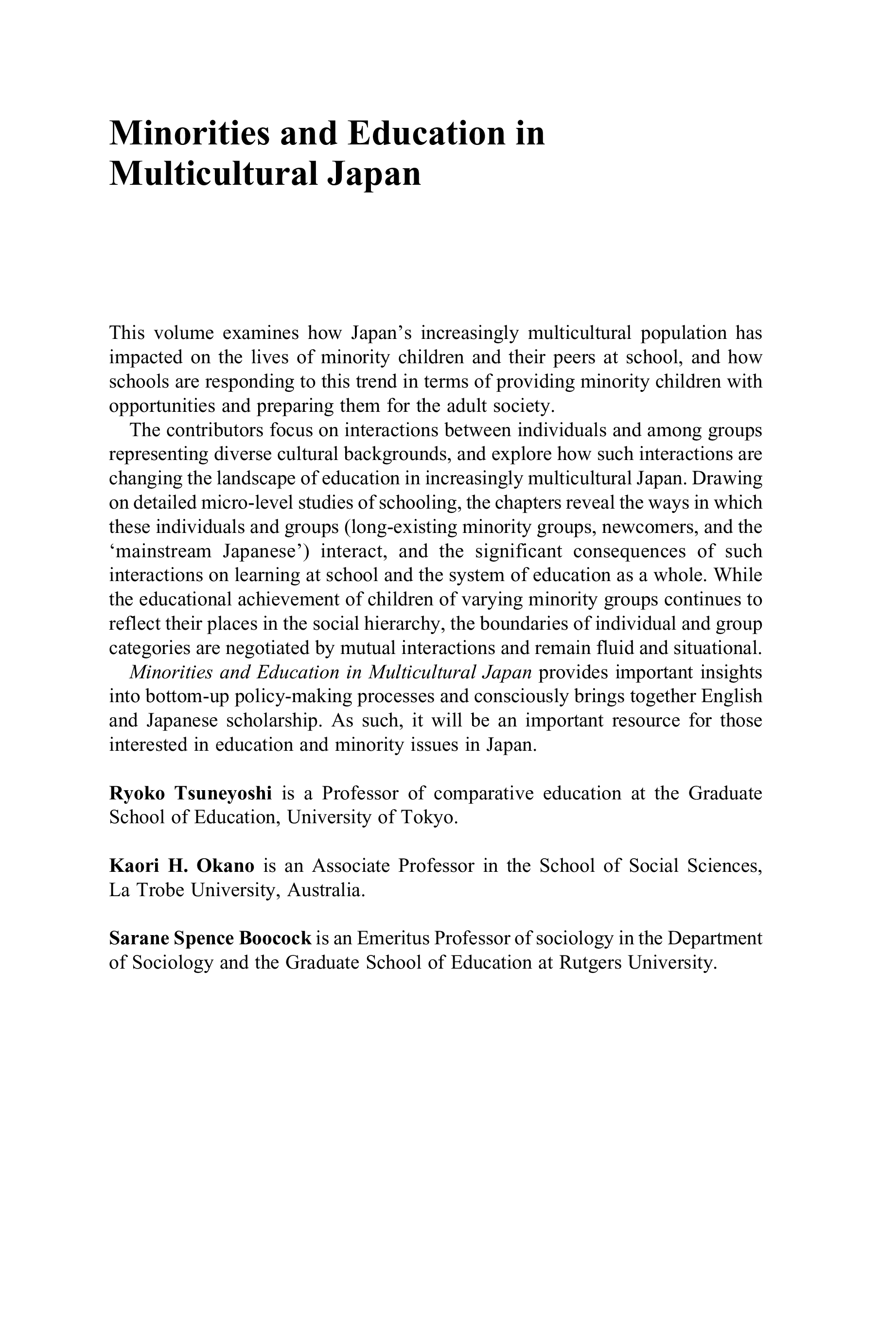 (Ryoko Tsuneyoshi, Kaori H. Okano and Sarane Boocock (Editors))
