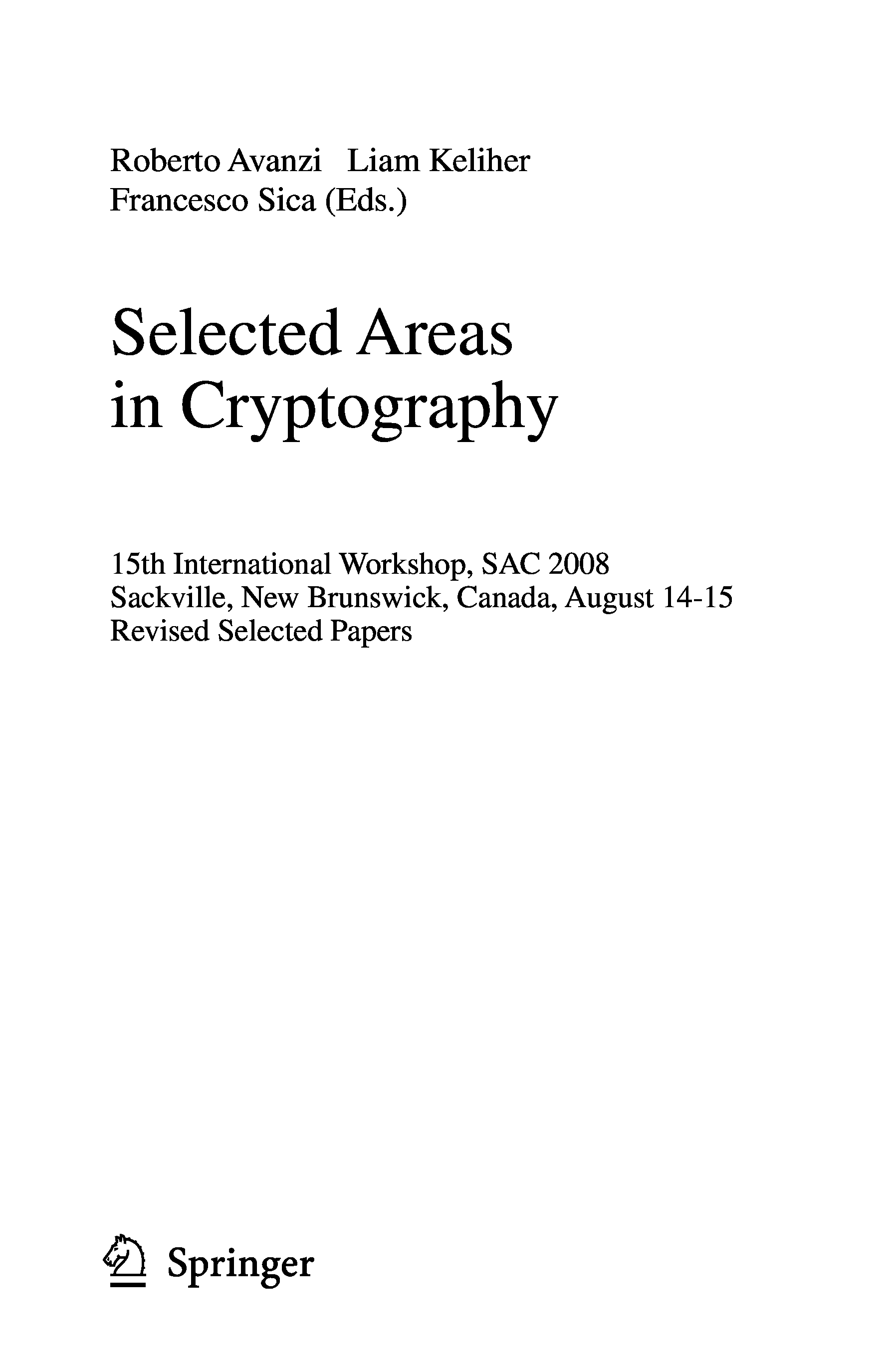 "Selected Areas in Cryptography: 15th Annual International Workshop, SAC 2008, Sackville, New Brunswick, Canada, August 14-15, 2008 (Lecture Notes in Computer Science Security and Cryptology)" - читать интересную книгу автора (Roberto Avanzi, Liam Keliher, Francesco Sica)