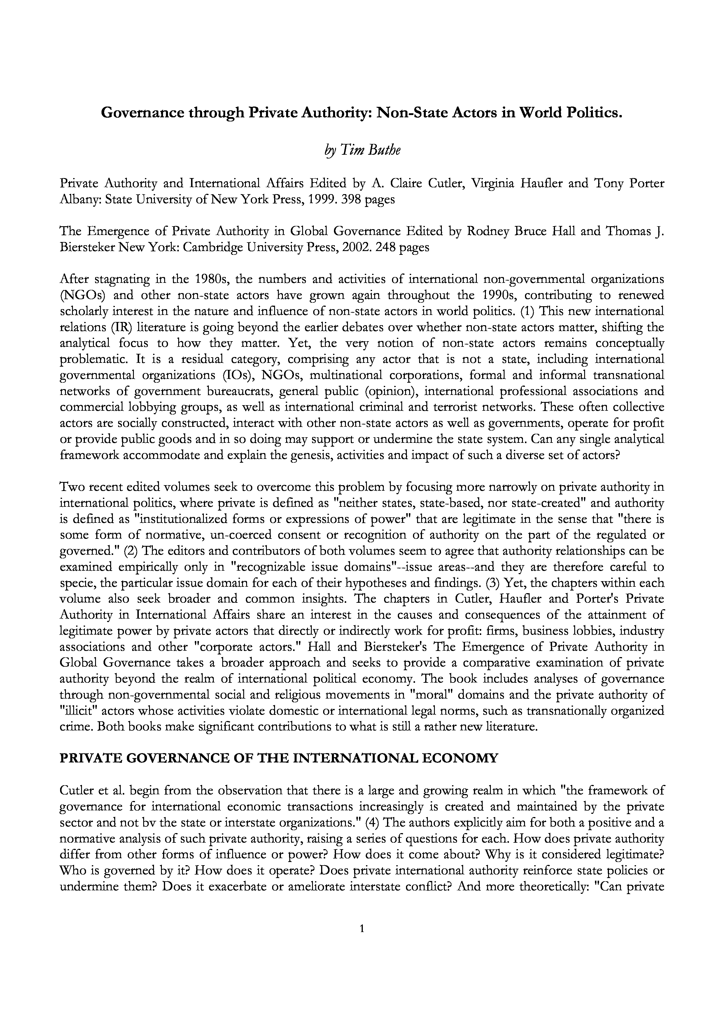 "Governance through private authority: non-state actors in world politics.(Private Authority and International Affairs )" - читать интересную книгу автора