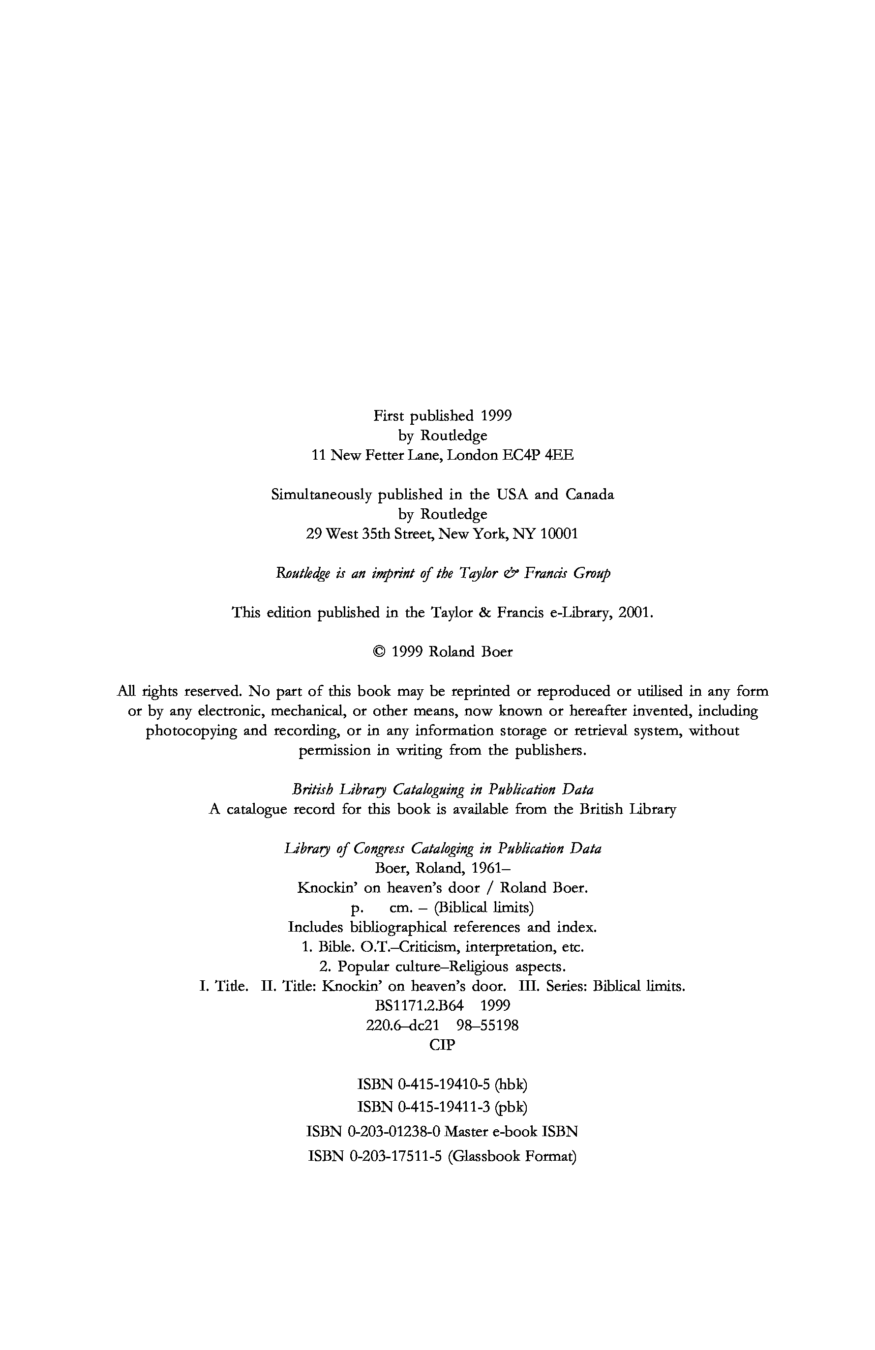 "Knockin' on Heaven's Door: The Bible and Popular Culture (Biblical Limits)" - читать интересную книгу автора