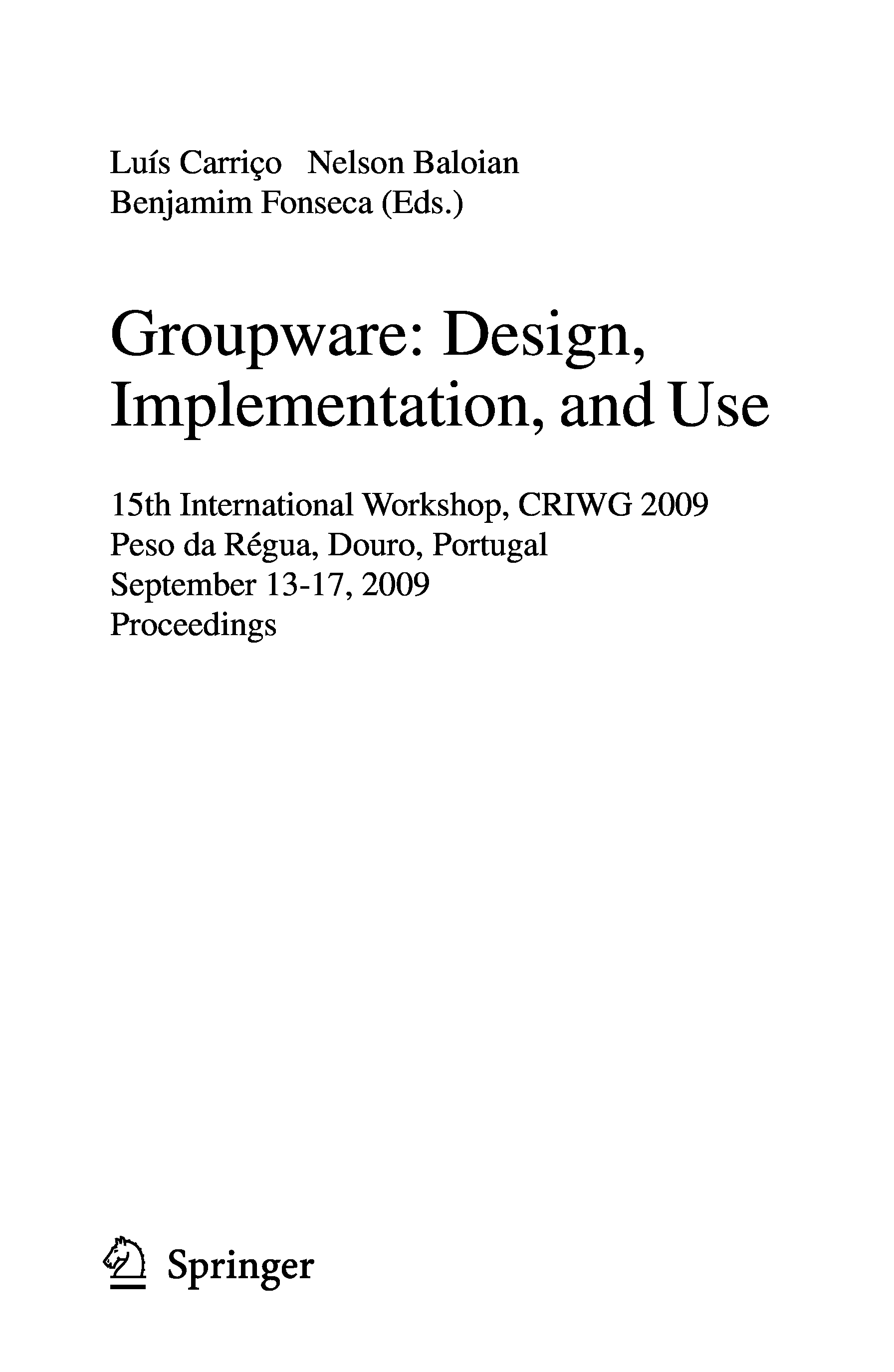 "Groupware: Design, Implementation, and Use: 15th International Workshop, Peso da Régua, Douro, Portugal, September 13-17, 2009, Proceedings (Lecture ... Applications, incl. Internet Web, and HCI)" - читать интересную книгу автора (Luis Carriço, Nelson Baloian, Benjamim Fonseca)