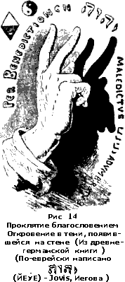 Рассматривая средневековые карты, невольно поражаешься, до какой степени небрежно стали обозначаться на них звезды и как тщательно вырисовывались и растушевывались эти фантастические звери и предметы, предполагавшиеся реально существующими на стеклянном небесном своде, превратившемся, наконец, в воображении древних в какой-то зверинец. Фантазия совершенно вытеснила действительность. Астрономия превратилась в астрологию, или гадание по созвездиям, находящимся над головой в момент наблюдения, и по положениям в них планет; химия превратилась в алхимию, или особый род колдовства, а математика — в гадание по числам — каббалистику. В каждом имени складывались числовые значения букв по той азбуке, которая была известна данному ученому, и полученному таким образом числу или шифру приписывалось таинственное влияние на жизнь того, кто носит такое имя. В самом Апокалипсисе мы находим пример этого гадания в виде числа 666, которым характеризовалось в представлениях автора имя враждебного Христу зверя и которое, по показаниям древних, было шифром Латинской Империи (#955;#945;#964;#949;#953;#957;#959;#962; = 666) во время ее распадения на восточную и западную половины. Гадали тогда по всему. Древние авгуры гадали по внутренностям животных, по полету птиц, по колебаниям травы, по теням, появляющимся на стене, как это нередко делали и потом в средние века (рис. 14), а вот в Апокалипсисе мы видим, кроме четырех последних родов гадания, еще и пятый способ — гадание по полету облаков. И нет сомнения, что этот род гадания был самым поэтическим из всех. Кому из вас в теплый летний день не приходилось наблюдать, как над вашей головой пролетают вереницы облаков, принимая на своем пути фигуры всевозможных предметов, замков, башен, животных и их отдельных членов? Куда они несутся, зачем? Вот вопросы, которые невольно должны были возникать у древних наблюдателей, а так как вся природа была для них полна таинственных влияний, то они невольно были склонны видеть такие же влияния и в облаках. Ведь и до сих пор облака служат темой для самых лучших лирических произведений поэтов. Я приведу вам здесь только одно стихотворение, данное мне А. М. Федоровым по поводу моей книги об Апокалипсисе, в подтверждение того, что у многих независимо друг от друга могут возникать родственные идеи: Аналогичные ощущения перед грозой, но еще в несравненно более сильной степени, должны были, конечно, существовать и у наших предков. Припомним, что гроза была для них символом божьего гнева. На каждой грозовой туче древние евреи видели самого Иегову, летящего среди громов и молний, для того, чтобы поразить своим неотразимым ударом какого-либо страшного грешника, совершившего свое преступление так, что земное правосудие было бессильно покарать его. Вот почему в древности и в средние века никто не решался даже похоронить человека, убитого молнией. Если в наши времена, когда мы хорошо знаем, что в грозовых явлениях действуют простые проявления земного электричества, многие из нас чувствуют во время грозы какой-то инстинктивный страх, то что же было в древности, при полном непонимании причин этого явления? Наше тревожное настроение во время грозы, вероятно, осталось в нас лишь как незначительный пережиток того ужаса, который чувствовали пред ней целые поколения наших предков. Только благодаря этому пер